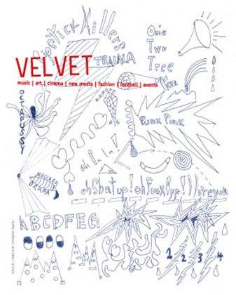 - Το 2005 δημιουργείται το Velvet team με πρώτη ενέργεια το free press Velvet Magazine. Το πρώτο edito που υπογράφουν είναι επικήδειος και αναγγελία – ένα γκραφίτι στον τοίχο του μπαλκονιού τους: “Superman died yesterday. If I can do it you can do it too”.