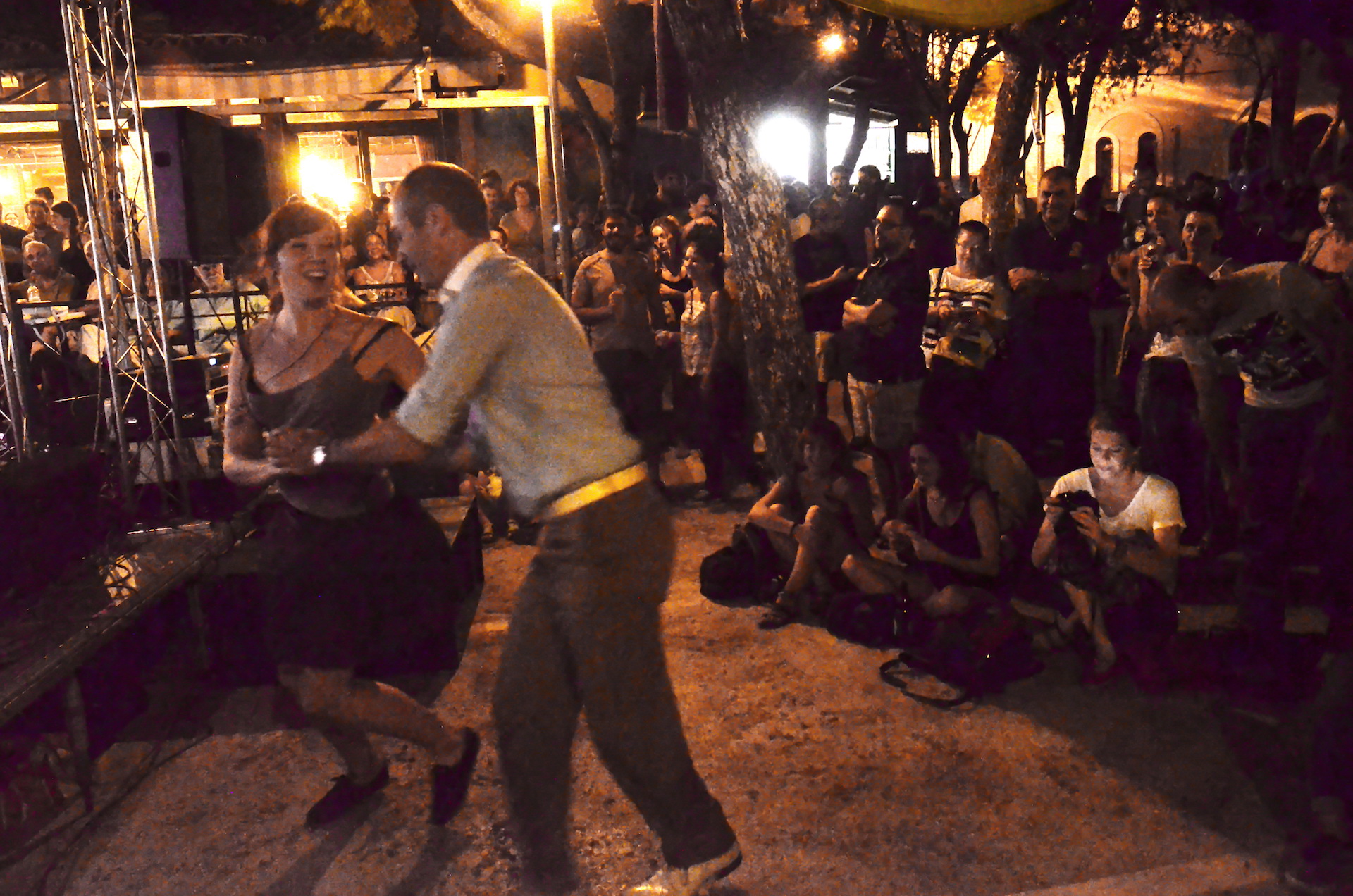 Η εκδήλωση τα τελευταία χρόνια είναι δωρεάν και γίνεται σε ανοιχτό χώρο. Δεν έχει ρίσκο αυτό; Ποια τα οφέλη μιας εκδήλωσης χωρίς αντίτιμο; Η δύσκολη εποχή που ζούμε , εκτός από τα προφανή οικονομικά προβλήματα που αντιμετωπίζουμε όλοι μας, κρύβει κι άλλες πολλές δυσκολίες που είναι εξίσου σοβαρές, αν και τις περισσότερες φορές στέκουν καλά κρυμμένες και βαθύτερες. Η επιλογή μας το φεστιβάλ να γίνεται χωρίς εισιτήριο, ήταν καταρχήν μια διάθεση προσφοράς της ομάδας των μουσικών που το διοργανώνουμε όλα αυτά τα χρόνια, απέναντι στο κοινό αυτής της μουσικής και όχι μόνο. Παρά το τεράστιο οικονομικό ρίσκο να χτίσεις κάτι χωρίς καμιά οικονομική υποστήριξη από πουθενά, κάτι που από ότι αποδείχτηκε δεν ήταν διόλου μικρό (ας σκεφτούμε οτι το περσινό Djangofest φιλοξένησε 3.500 άτομα), το προσπαθήσαμε και το καταφέραμε! Μια εκδήλωση τέτοιας εμβέλειας χωρίς αντίτιμο φαινόταν στα μάτια των περισσοτέρων μας …άθλος! Αλλά το πιστέψαμε, το προσπαθήσαμε, το στηρίξαμε ηθικά και …σωματικά και πέτυχε! Αυτό που κερδίσαμε ήταν η μεγάλη συμμετοχή του κόσμου που αυξάνεται σταθερά κάθε χρόνο, η υποστήριξή του, οι περισσότεροι εθελοντές κάθε χρονιά και φυσικά τα χαμόγελα όλων. Και τελευταίο, αλλά διόλου ευκαταφρόνητο είναι η απίστευτη αίσθηση πληρότητας και ολοκλήρωσης που αισθανθήκαμε όλοι μας όταν διαπιστώσαμε ότι η προσπάθειά μας ευόδωσε και έφτασε στους ανθρώπους!