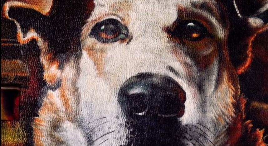 “All dogs go to heaven”. Το γκράφιτι αφιερωμένο στον Λουκάνικο βρίσκεται επί της Σαρρή και Ρήγα Παλαμήδου 4.