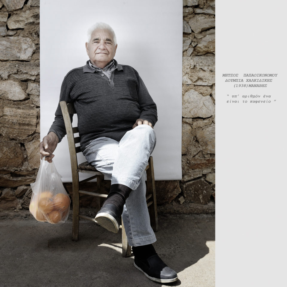 Πώς γεννήθηκε η ιδέα του συγκεκριμένου project που θέτει στο επίκεντρό του ένα Καφενείο του 1972 και ποια η προσωπική σύνδεση μαζί του; Στο poject επικεντρώθηκα σε ένα κομμάτι της ελληνικής παράδοσης, στο καφενείο των γονιών μου, που λειτουργεί ανελλιπώς επί 45 χρόνια στα Σανά Χαλκιδικής από το 1972, όταν και γεννήθηκα. Θέλησα να δημιουργήσω ένα επετειακό αφιέρωμα το οποίο να απεικονίζει τον τρόπο με τον οποίο οι θαμώνες περνούν τις ώρες τους στον χώρο του Καφενείου από το ξεκίνημά του μέχρι και σήμερα. Το project παρουσιάζει πορτραίτα των ιδιοκτητών του καφενείου –και γονιών μου– καθώς και των θαμώνων που συχνάζουν σε αυτό από το 1972 και έχουν καταφέρει να αναπτύξουν μεταξύ τους ανά τα χρόνια μία σχέση διαδραστική. Σε κάθε φωτογραφία αναφέρεται το όνομα του ανθρώπου, η ημερομηνία γέννησης, το επάγγελμα σε ορισμένες περιπτώσεις, καθώς και μία φράση για το τι σημαίνει το καφενείο γι’ αυτόν. Άνθρωποι με μια μυρωδιά αυθεντικότητας, ειλικρίνειας και αλήθειας. Δε μπορώ να ξέρω αν η φωτογράφιση έγινε συνειδητά, γιατί τα βιώματά μας βγαίνουν με διάφορους τρόπους στην επιφάνεια. Αυτό που ξέρω σίγουρα είναι ότι πρόκειται για ένα αποτέλεσμα της επαγγελματικής μου επάρκειας ως φωτογράφου και της προσωπικής μου θέσης των πραγμάτων με σύμμαχο το φωτογραφικό μέσο. Απέφυγα τον εσωτερικό χώρο για την φωτογράφιση, καθώς ο εξωτερικός πέτρινος τοίχος, υπάρχει αναλλοίωτος από την πρώτη μέρα της λειτουργίας του καφενείου, αποτελώντας τη βάση, τον λίθο της αφήγησης. Η τυπολογία ολοκληρώθηκε με την χρήση του λευκού φόντου, με αποτέλεσμα το κάθε πορτραίτο να παραμένει ακέραιο. Στις φωτογραφίες που προέκυψαν, δεν υπάρχει κανένας εννοιολογικός λαβύρινθος αλλά ούτε κάποιο νοσταλγικό πρόσημο. Τα πρόσωπα και οι λέξεις τους, αυτά θα περιγράψουν το καφενείο με τρόπο βιωματικό, πιθανόν να απαντήσουν σε ερωτήματα για την πορεία μου ως άνθρωπος και φωτογράφος. Ακόμη, η δημιουργία μελλοντικά μιας εγκατάστασης-έκθεσης στον εξωτερικό υπαίθριο χώρο του καφενείου, για να υπάρχει μια αμεσότητα και να ξεφύγουμε από τα όρια των τοίχων και του χώρου, θα ήταν ιδανική.