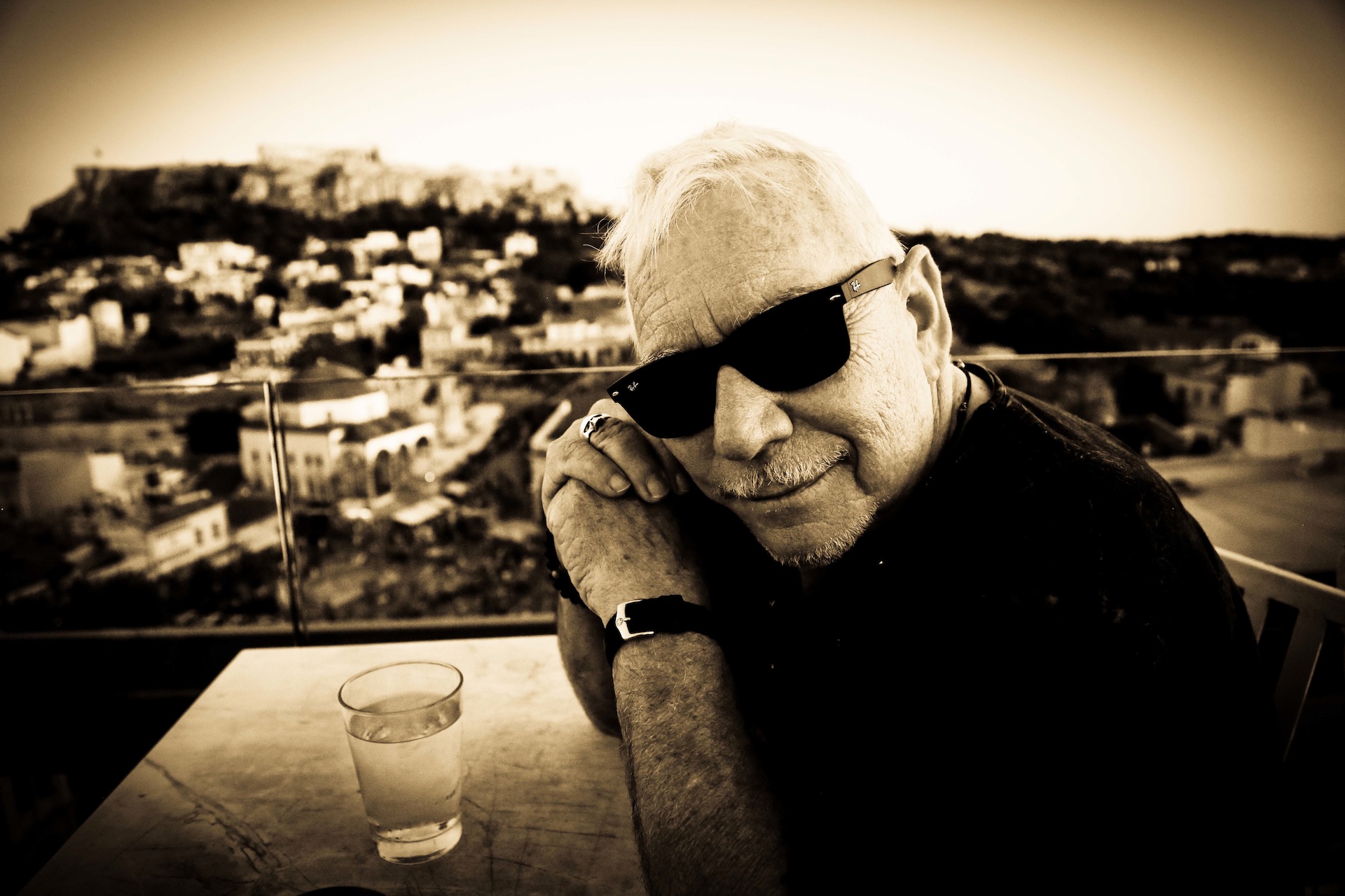 Τελικά είσαι πολύ τυχερός όταν μεγαλώνεις με τους θρύλους σου (κι ας μεγαλώνεις…). Κοιτάζοντας προχθές το απόγευμα τον Eric Burdon να φωτογραφίζεται χαμογελαστός μπροστά σε κλειστά σιδερένια ρολά γεμάτα γκράφιτι στην πλατεία Αβησσυνίας, αυτό σκεπτόμουν. Μην ξαφνιαστείτε αν τον δείτε απέναντί σας στρίβοντας από κάποια γωνία στο Μοναστηράκι, στου Ψυρρή ή στα Εξάρχεια. Πριν την εμφάνισή του στο Rockwave Festival, ο αειθαλής Eric κόβει βόλτες στην Αθήνα που αγαπά, σταματώντας κάθε λίγο για να φωτογραφηθεί ή να δώσει αυτόγραφα σε όσους τον αναγνωρίζουν (οι περισσότεροι νέα παιδιά). «Ουυυπς τι είναι αυτό εκεί πάνω; Καφέ;» ρωτάει με στραμμένο το κεφάλι στον ουρανό και βλέπω για πρώτη φορά στου Ψυρρή μια ταράτσα που δεν είχα προσέξει ποτέ! Εμπρός λοιπόν, πάμε! Τι καλύτερο από το να απολαύσεις το ηλιοβασίλεμα βλέποντας την Ακρόπολη, τον Λυκαβηττό, το Μοναστηράκι κι όλη την πόλη να βυθίζεται σιγά σιγά στη γοητεία της νύχτας, πίνοντας κοκτέιλ; Thanks Eric!