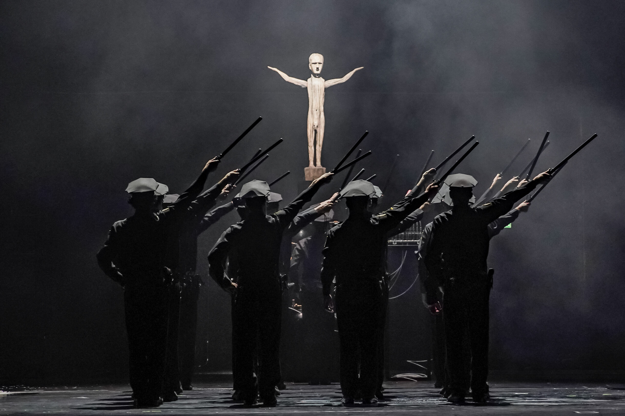 «Ελευθερία, δικαιοσύνη, βία, ατομική ευθύνη, κριτική σκέψη, ασυδοσία και υπακοή. Το θέατρο μεταμορφώνεται σε ένα οντολογικό τοπίο απ’ όπου η ανθρωπότητα παρελαύνει ως μια υπάκουη αδελφότητα, έτοιμη ανά πάσα στιγμή να επιτεθεί στην ίδια της τη σάρκα»