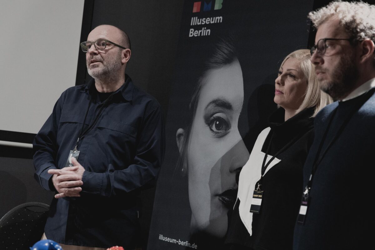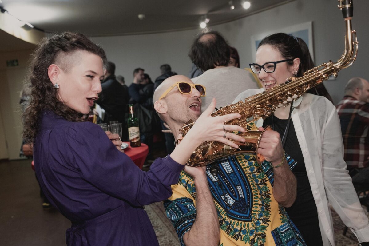 O Alegros Gramma στην πρεμιέρα με την Κατερίνα και την Σοφία από την ομάδα του φεστιβάλ.