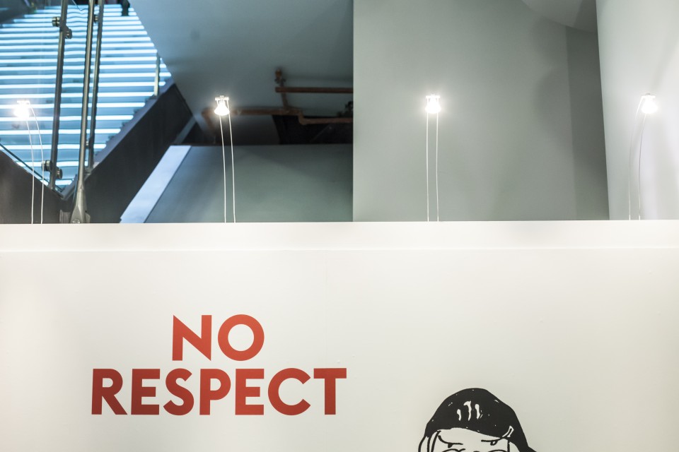 Η «άστεγη τέχνη βρίσκει στέγη», και κάπως έτσι, «Χωρίς Σεβασμό», το υπόγειο της Στέγης Γραμμάτων και Τεχνών γέμισε γκραφίτι, όχι μόνο στους τέσσερις τοίχους αλλά και στο πάτωμα, στις κολώνες, στον προθάλαμο και στα τρία αμάξια που υπήρχαν στο χώρο.