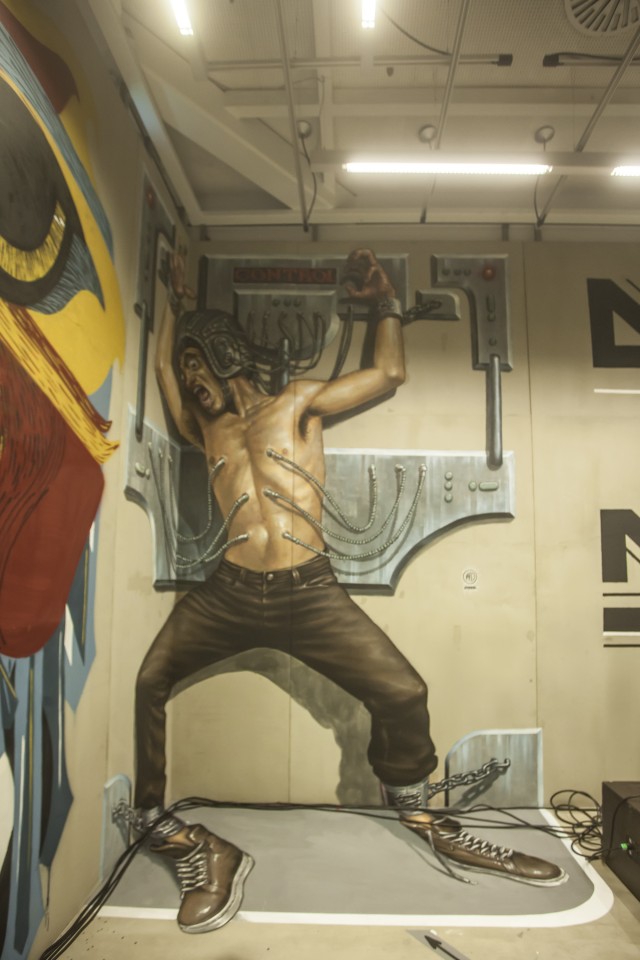 Τα εγκαίνια έγιναν την Παρασκευή και επικράτησε πανδαιμόνιο: πολύς κόσμος (πάσης ηλικίας και στυλ), μουσική, χρώμα, μίξη τεχνικών και επαναλαμβάνω, τρία αμάξια. Φυσικά αξίζει να σημειωθεί ότι η καλλιτεχνική διευθύντρια εικαστικών της Στέγης και curator του «No Respect»Μαριλένα Β. Καρρά, που κατάφερε να πείσει σαράντα καλλιτέχνες γκραφίτι να συμμετάσχουν στην έκθεση, τους μαγνητοσκόπησε επί τω έργω και η διαδικασία προβάλλεται σε δύο οθόνες. Εν ολίγοις, όπου στραφεί το βλέμμα υπάρχει χρώμα, σχέδιο, κρυφά και φανερά νοήματα. Υπάρχει τέχνη.