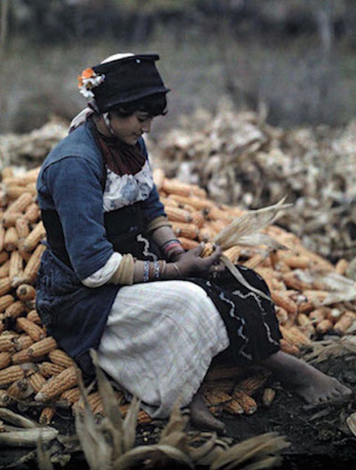 Τουρκάλες πρόσφυγες στη διαδικασία ξήρανσης καλαμποκιού, στην Πέλλα