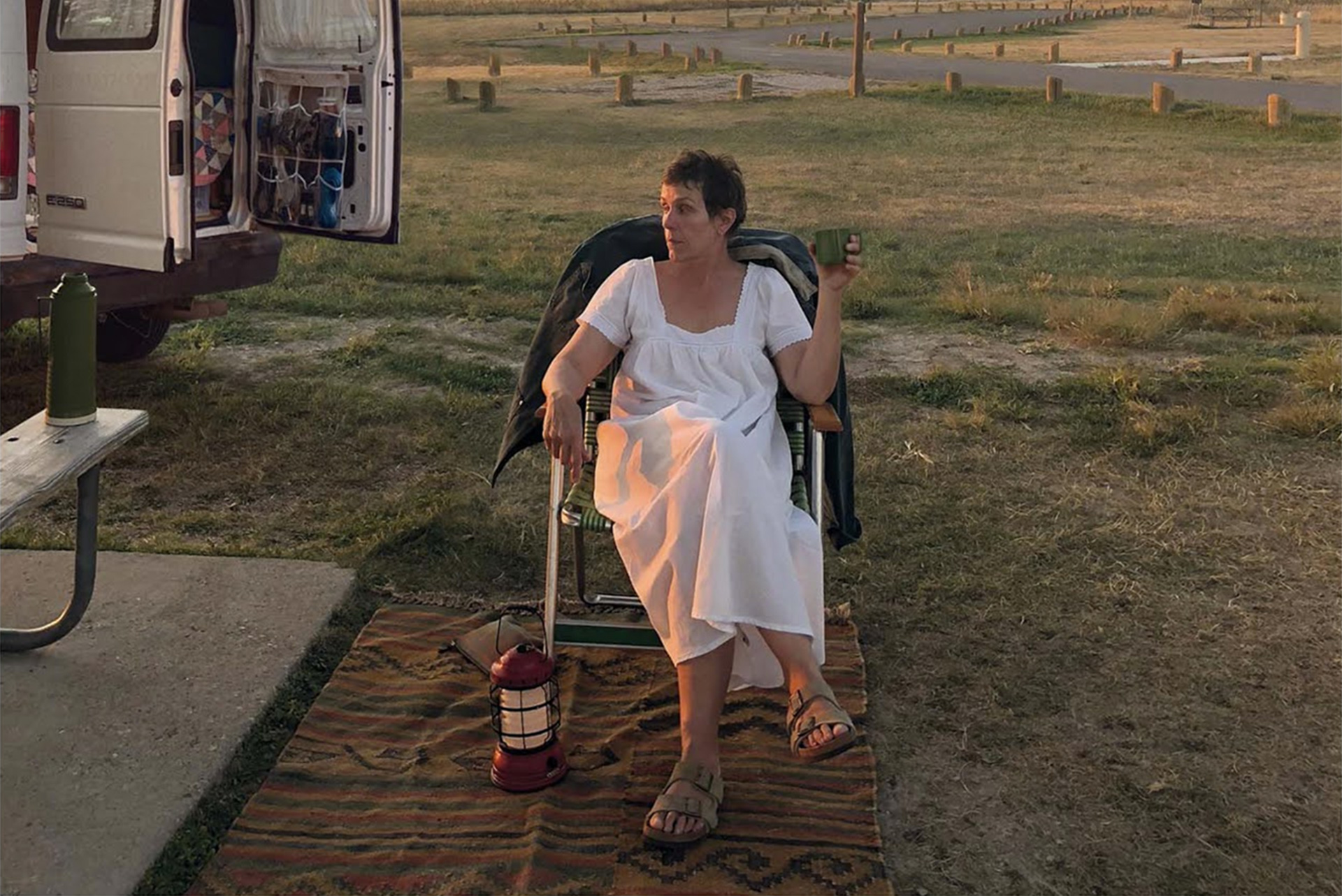 Μια εν πολλοίς μοναχική ζωή στη μέση του πουθενά, με φόντο την απέραντη, γαλήνια ερημιά της μεσοδυτικής Αμερικής είναι η ειδικότητα της Τζάο, της κινέζας σκηνοθέτη και σεναριογράφου που με μόλις τρεις ταινίες έχει καθιερωθεί ως rural juror (πείτε το δυνατά με προφορά) της «πατρίδας των γενναίων και της γης των ελεύθερων», καταγράφοντας με μοναδική ευαισθησία και συμπόνια τις λυτρωτικές ιδιότητες της φύσης, της απλότητας και της απόστασης από τα εγκόσμια. Το σινεμά της Τζάο ανθίζει εκεί που η πραγματικότητα χρειάζεται τη δύναμη μιας ιστορίας για να προχωρήσει – στο Songs My Brothers Taught Me και στο Καλπάζοντας με το Όνειρο πρωταγωνιστούσαν οι αληθινοί ήρωες των ιστοριών και η πρακτική αυτή συνεχίζεται και στη Χώρα των Νομάδων, που βασίζεται στο βιβλίο του 2017, Nomadland: Surviving America in the Twenty-First Century της Τζέσικα Μπρούντερ. Οι φίλοι που γνωρίζει η Φερν κατά τη διάρκεια της οδύσσειάς της (η εργατική γιαγιά Λίντα Μέι, η καρκινοπαθής Σουάνκι που ελπίζει μόνο να δει τα πουλιά της Αλάσκα πριν πεθάνει, ο γκουρού των νομάδων Μπομπ Γουέλς) είναι οι ίδιοι που έδωσαν τις μαρτυρίες τους και στη συγγραφέα: άνθρωποι ανήμποροι να συντηρήσουν τη ζωή τους, αλλά και να συνταξιοδοτηθούν, που ξέμειναν από επιλογές κι αποχώρησαν από το σύστημα για να καταφέρουν να επιβιώσουν.