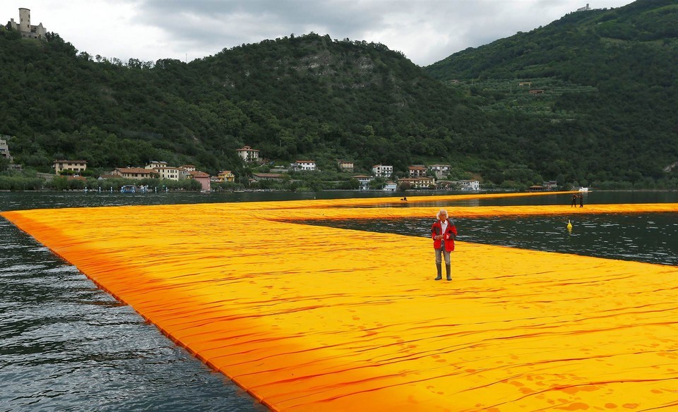 Ένα πλωτό, σπονδυλωτό σύστημα αποβάθρας έκτασης 100.000 τ.μ. και καλυμμένο με ύφασμα σε χρυσαφί χρώμα δίνει την ευκαιρία στους επισκέπτες να διασχίσουν την ιταλική λίμνη Iseo και δημιουργεί ένα παραμυθένιο σκηνικό όπως φανερώνουν και οι φωτογραφίες.