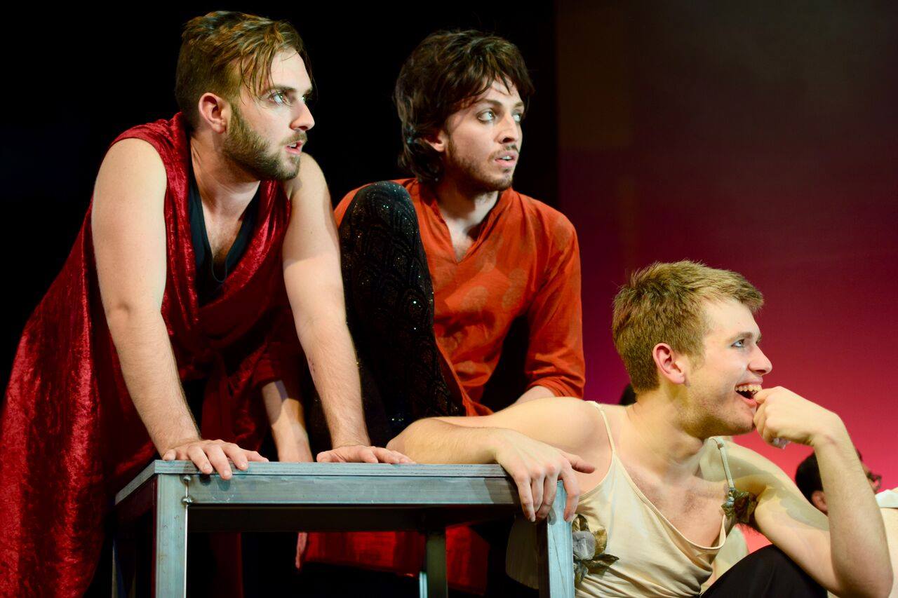 Αυτά το κείμενο. Αυτά ο Ευριπίδης. Στην παράσταση όμως ; Τι είδαμε; Είδαμε τρεις διαφορετικούς ηθοποιούς να παίζουν τον Διόνυσο, να φιλάνε ο ένας τον άλλο στο στόμα, αλλά να φιλάνε και τον χορό των Βακχών στο στόμα. Να χαϊδολογούνται, να χουφτώνουν ο ένας τον άλλο. Ο Διόνυσος Α’ χούφτιαζε τα καπούλια του Διονύσου Β’ μέχρι να αναλάβει ο Διόνυσος Γ’ ο οποίος φορούσε στενό κορσέ και σούφρωνε τα χείλη σαν Μικ Τζάγκερ. Ο δε χορός των Βακχών αποτελείτο από αγόρια θηλυπρεπή και όχι κορίτσια. Αγόρια τα οποία όλα στο πλαίσιο του ανδρόγυνου, δεν μπορούσες να καταλάβεις αν είναι άνδρες ή γυναίκες. Με λάγνα βλέμματα, κουρμπαριστά σώματα και καμπύλες, με ψιλές φωνές και χορευτικές κινήσεις. Πού λέει ο Ευριπίδης ότι οι Βάκχες είναι θηλυπρεπή αγόρια και φιλιούνται στόμα με στόμα; Κορίτσια δεν υπήρχαν σε αυτόν τον χορό; Βεβαίως υπήρχαν. Δύο ξανθές, στρουμπουλές και απωθητικές Βρετανίδες. Σαν ο σκηνοθέτης να μισούσε τις γυναίκες; Δεν ξέρω.