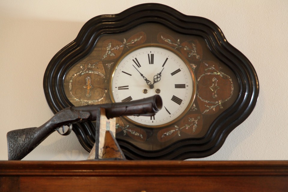 Το ρολόι από την ταινία “Το κανόνι και το αηδόνι” και η βιτρίνα με τα κουκλάκια της Κατερίνας από τα ταξίδια του ζευγαριού
