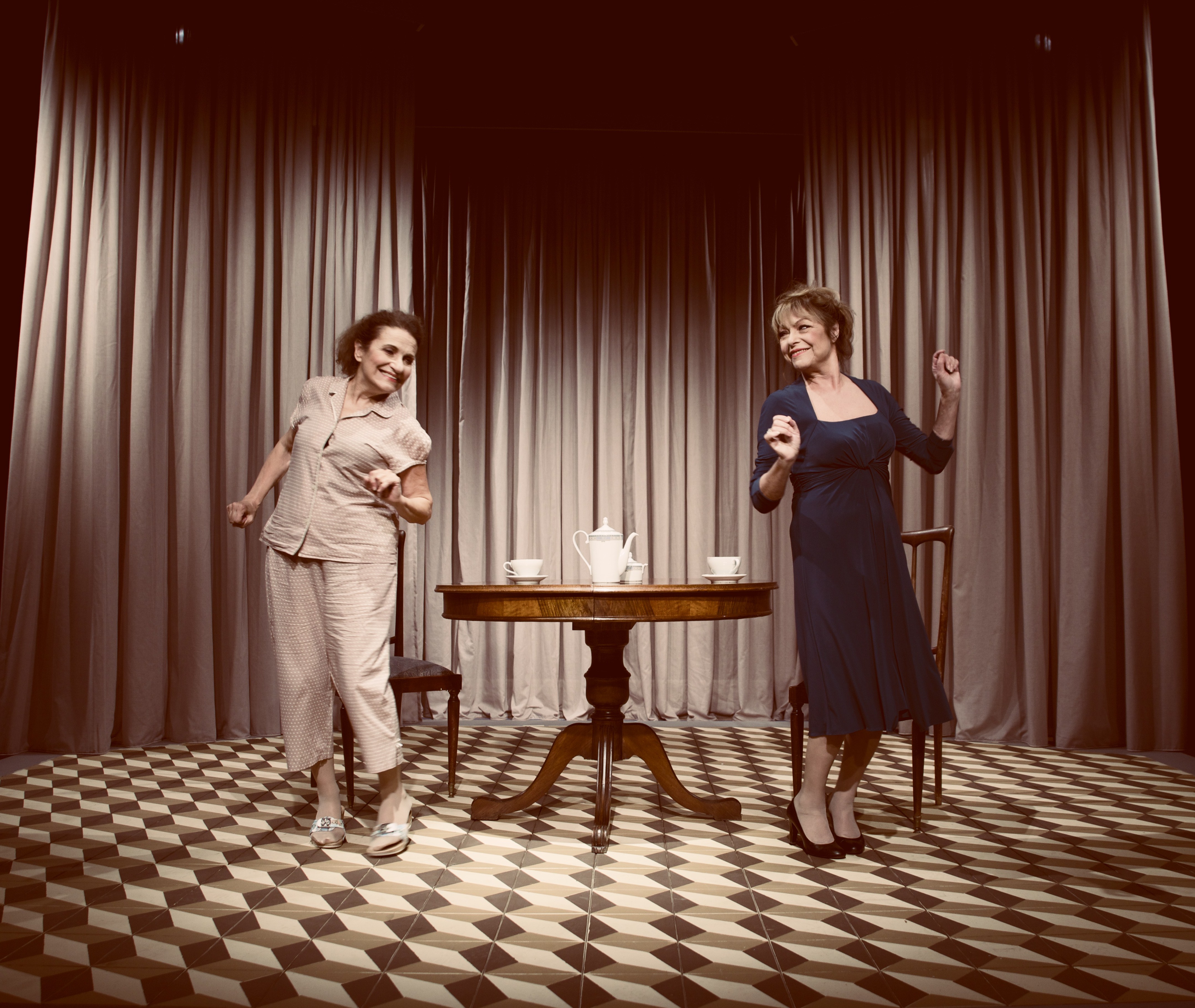 Προσέγγιση που ξενίζει σφόδρα τους κάπως πιο silver haired θεατές της παράστασης, αλλά αποδεικνύεται ζωτικής σημασίας για την ανάδειξη του κειμένου. Του οποίου οι περιπαικτικές κυλήσεις στο μελοδραματικό κλισέ, θα ήταν αφόρητες, αν δεν αποδίδονταν με τον λεπτό προσποιητό στόμφο που με τόση χάρη, φινέτσα και ακρίβεια αποδίδουν οι δυο τεράστιες ερμηνεύτριες, γειώνοντας το έργο στο ρεαλισμό κι αφορίζοντας τη σοβαροφάνεια με αναζωογονητικό χιούμορ. Πιττακή και Οικονομίδου καταδιασκεδάζουν μαζί σου το ρετάλιασμα της προσποιητής αγιοσύνης των ηρωίδων τους, και το γκρέμισμα της θεατρικής φόρμας εξίσου, και σου αποδεικνύουν επί σκηνής κι επί πρακτέου, ότι τελικά, η τόλμη χρόνια δεν κοιτά.