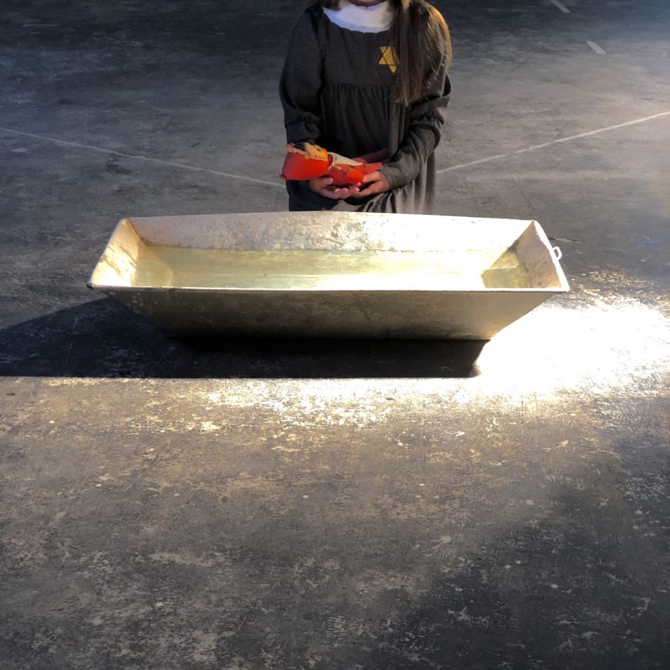 Στο φουαγιέ του Χώρου Ε, μας περίμενε αυτή η γεύση, η αγγελικά πλασμένη: δυο νέοι με το κίτρινο άστρο τρέχουν σ’ ένα παρκάκι, παίζουν ένα επιτραπέζιο παιχνίδι (ένα αληθινό παιχνίδι προπαγάνδας της εποχής του Χίτλερ, που είχε τίτλο Juden Raus. Στόχος των παικτών ήταν να βρουν και να εκδιώξουν τους Εβραίους). Οι αφίσες στο φόντο, συμπληρώνουν το πλαίσιο της ονειρεμένης και ανέμελης ζωής.