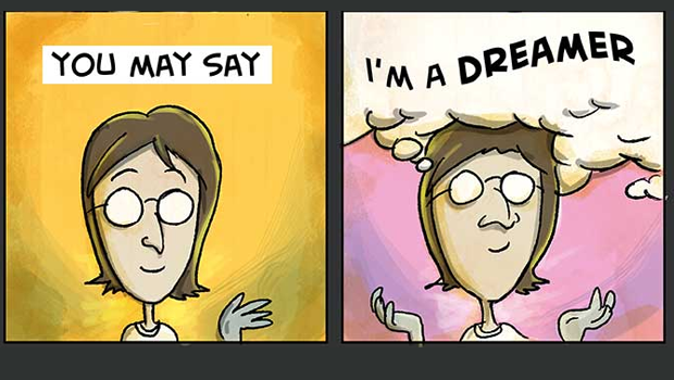 Παρ’ όλα αυτά, το «Imagine» είναι η επιτομή του all-time classic. Και σήμερα, 43 χρόνια μετά την αρχική του σύλληψη, ήρθε η ώρα να το δούμε σε μια διαφορετική μορφή: Οπτικοποιημένο ως κόμικ, από τον Pablo Stanley. Ο κομίστας χρωμάτισε τους στίχους, τους έδωσε εικόνα και έφτιαξε αρκετά πάνελ σχεδόν πιστά στο πνεύμα του κομματιού, σε κείμενο που ανέβηκε στο site The Mind Unleashed.