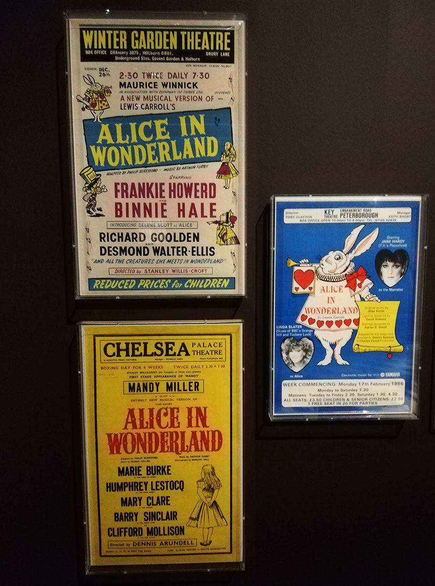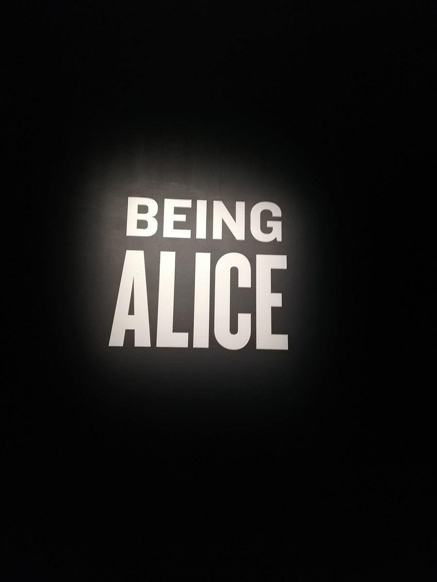 Η μεγάλη έκθεση του Μουσείου Victoria & Albert, “Alice: Curiouser and Curiouser” είναι μία πραγματική γιορτή για το θρυλικό αυτό “παιδικό” βιβλίο, με πάνω από 300 αντικείμενα, όπως χειρόγραφα, εικονογραφήσεις, φωτογραφίες, κοστούμια θεάτρου και μπαλέτου, ταινίες και πίνακες ζωγραφικής, απλωμένα σε πέντε θεματικές αίθουσες. Μία συναρπαστική βουτιά στη λαγουδότρυπα, από τις απαρχές της ιστορίας της Αλίκης, μέχρι τις μυριάδες προσαρμογές και ερμηνείες που έχει δει ο κόσμος μέσα σε αυτά τα 150 χρόνια. Το ταξίδι ξεκινά εκεί όπου ο Carroll είπε για πρώτη φορά την ιστορία του, «ένα χρυσό απόγευμα». Φωτογραφίες της σχολής της Οξφόρδης καλύπτουν τους τοίχους, υπό τον ήχο του νερού που χτυπάει πάνω σε ένα κουπί. Σε ένα ντουλάπι βρίσκεται το αρχικό χειρόγραφο του Carroll.
