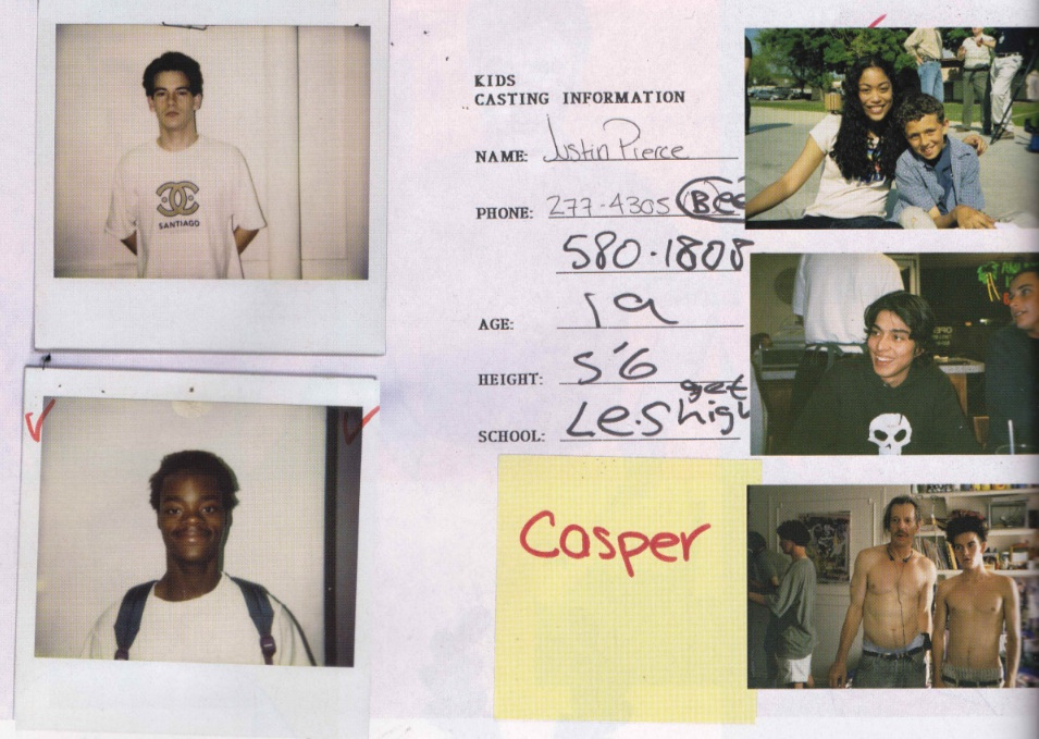 Σε λίγες μέρες ο Harmony θα έγραφε 10 – 12 σελίδες την ημέρα στο υπόγειο της γιαγιάς του και μέσα σε μια βδομάδα θα είχε το πρώτο draft μιας ιστορίας – ένεση αδρεναλίνης – που αφηγείται ένα 24ωρο της ζωής των κωλόπαιδων της Νέας Υόρκης. Το καστ ήταν ήδη έτοιμο. Ήταν έξω στα πάρκα και τους δρόμους του μεγάλου μήλου. Ήταν οι φίλοι του Harmony – και ήδη μεγάλες φιγούρες της skate κοινότητας- Justin Pierce (Casper) και Harold Hunter. Η Chloe Sevigny ήταν κολλητή του από το σχολείο. Ο Leo Fitzpatrick ήταν ανακάλυψη του Clark και «το πιο οργισμένο παιδί πάνω σε σανίδα εκεί έξω», για αυτό και τον τσίμπησε λίγο καιρό αφότου μπλέχτηκε με την skate κοινότητα. «Σε όλες τις χολυγουντιανές ταινίες, το αγόρι που ρίχνει τα κορίτσια, είναι ο ωραίος, ξανθός με γαλανά μάτια. Εγώ ήθελα ακριβώς το αντίθετο. Γιατί τα άγορια που ρίχνουν τα κορίτσια δεν είναι πάντα τα πιο όμορφα. Είναι τα αγόρια που το μόνο που σκέφτονται είναι το μουνί», λέει με ειλικρίνεια ο Clark στο Rolling Stone.