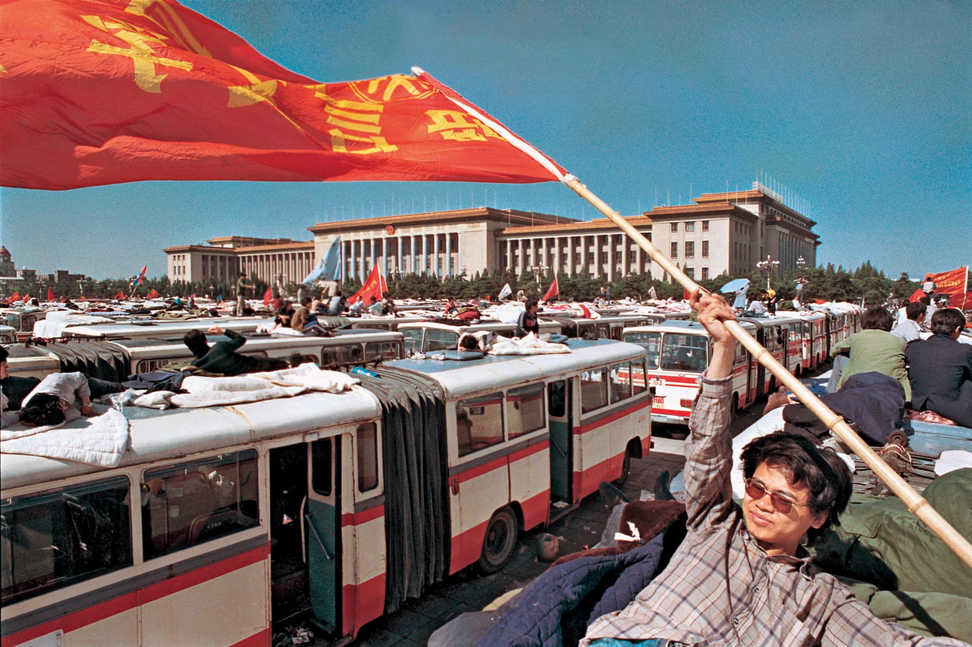 Φοιτητές συγκεντρωμένοι για διαμαρτυρία στην Πλατεία Τιανάνμεν, 1989.