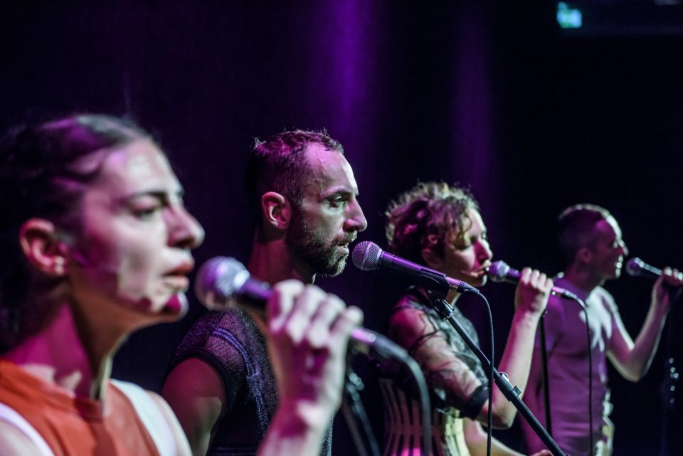 Το τραγούδι, ο φιλοσοφικός λόγος και η κίνηση ως ψηφίδες του Εrotikon πώς συμβάλλουν στην γέννηση και στη ζωή του έργου; Ως πεδία πειραματισμού καταρχάς. Το έργο αυτό συγκεντρώνει διαφορετικές μορφές έκφρασης και διαφορετικές οπτικές. Αγγίζοντας διαφορετικές καλλιτεχνικές πρακτικές, είναι δυνατόν για μας να δημιουργήσουμε διαφορετικά επίπεδα της παράστασης. Επομένως, η γέννηση του έργου, αν θέλετε, υπονοεί μια συζήτηση, ή ένα συμπόσιο αυτών των πρακτικών μέσω διαφορετικών καλλιτεχνών. Από την αρχή, κάναμε πρόβες και πειραματιστήκαμε συλλογικά. Τώρα καλούμε το κοινό στο υπόγειο της Στέγης Ωνάση και ελπίζουμε ότι θα απολαύσουν την εμπειρία αυτού του έργου μαζί μας και θα εισέλθουν στη συζήτηση.