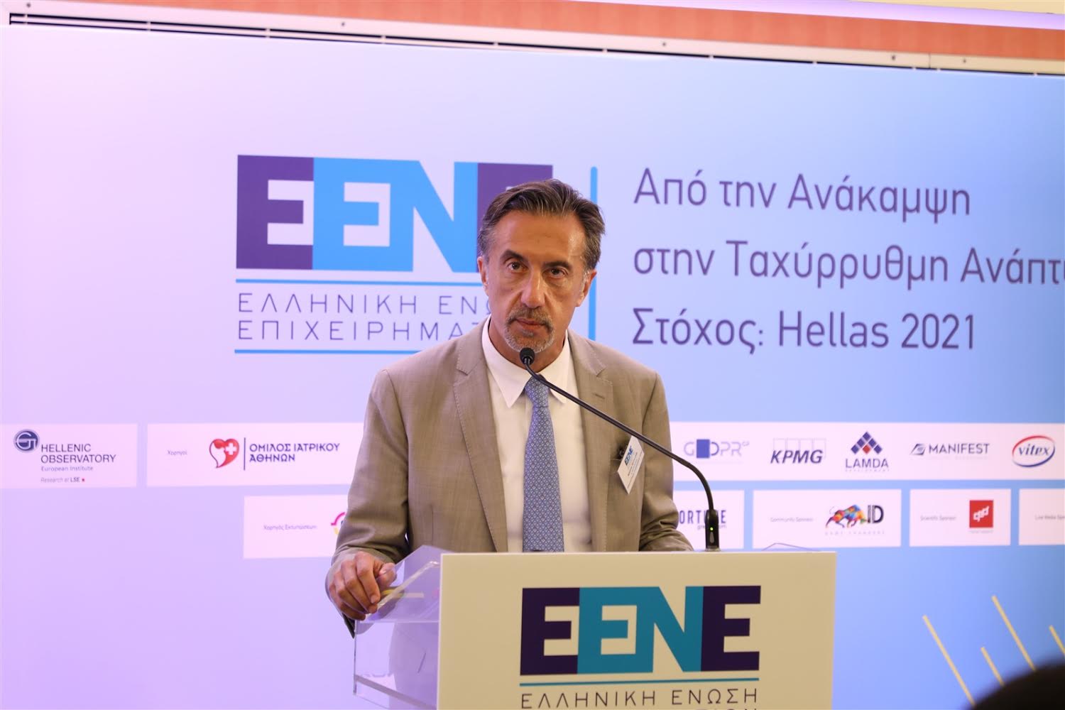 Μαζεύεστε εκεί στην Ένωση Ελλήνων Επιχειρηματιών και τους λέτε να σας πω δυο τρεις ιδέες, σαν αυτά που συζητάμε. Τι σας λένε, υπάρχει πρόσφορο έδαφος; Καταρχάς η ΕΕΝΕ, είναι εκ φύσεως λιγότερο συντηρητική από άλλες εργοδοτικές κυρίως ενώσεις. Εμείς βέβαια δεν είμαστε εργοδοτικός μηχανισμός, αλλά θέλουμε να βοηθήσουμε την επιχειρηματικότητα και υπάρχουν και πολλά νέα παιδιά, όπως ο Πρόεδρος μας ο Βασίλης Αποστολόπουλος, που είναι ανοιχτόμυαλος. Οπότε στο διοικητικό συμβούλιο υπάρχουν άνθρωποι, που ακούν και μετά το ψάχνουν το πράγμα. Τους είχε ιντριγκάρει αυτό το πράγμα και αυτά που λέμε τώρα, τους τα έχω εξηγήσει αρκετές φορές. Αλλά είχα ευήκοα ώτα, ούτως ή άλλως. Δεν χρειάστηκε να κάνω και πολλά. Για να σας δώσω ένα παράδειγμα, εγώ πιστεύω ότι καλύτερή μας απόδειξη, ότι πραγματικά το παλεύουμε για εξωστρέφεια, στη συνδιάσκεψη που κάναμε, ήταν η βράβευση που προσφέραμε στους ανθρώπους, out of the blue και εκτός του συνηθισμένου επιχειρηματικού γίγνεσθαι.