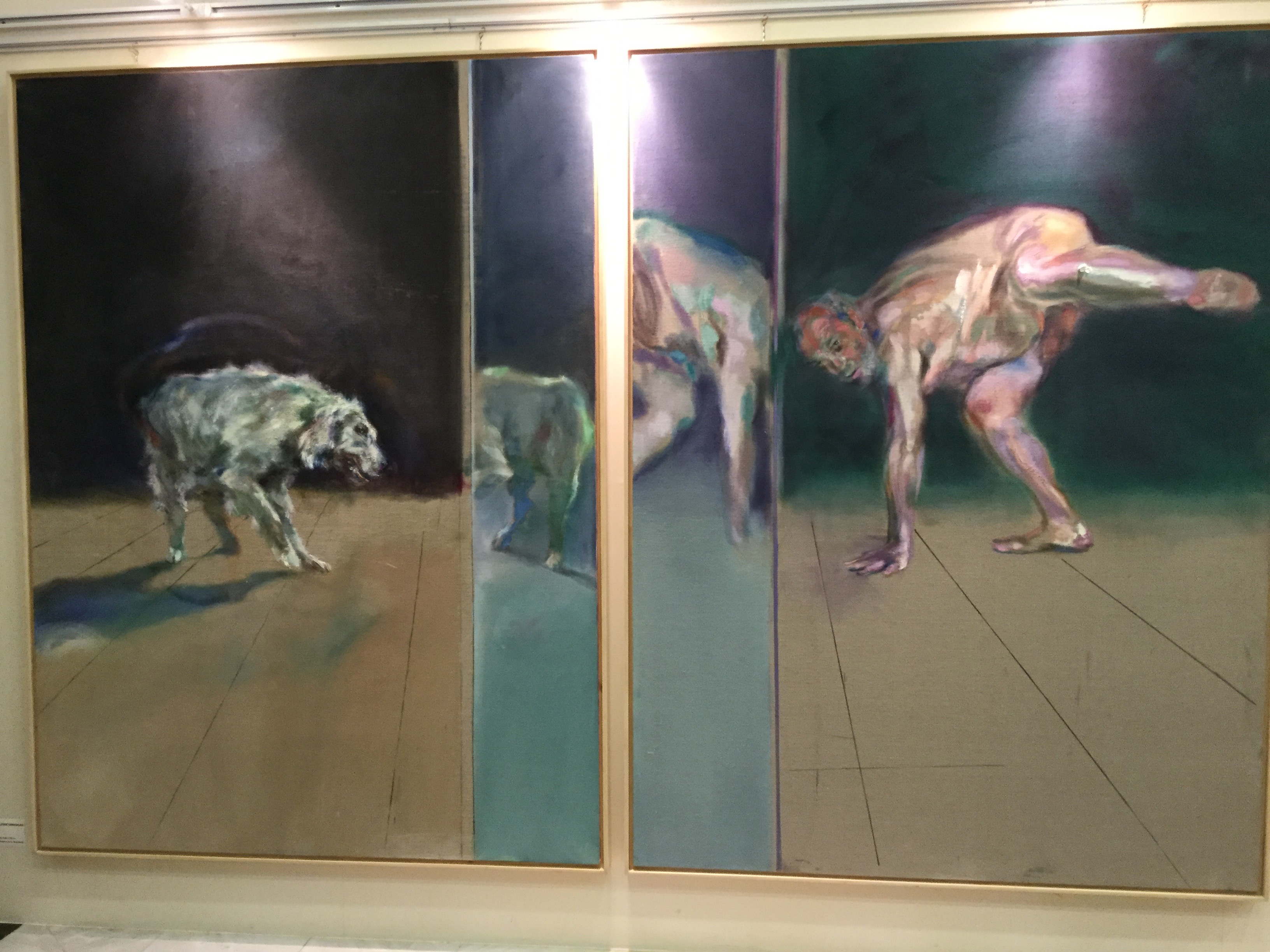 Δίπτυχο αυτοπορτρέτων του Αλέξη Βερούκα και του σκύλου, με πολλές επιρροές και από τον Francis Bacon.