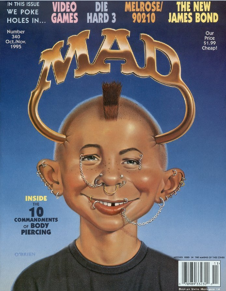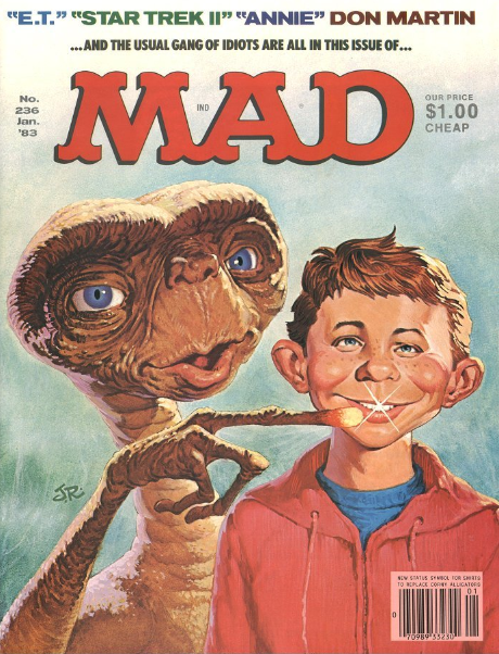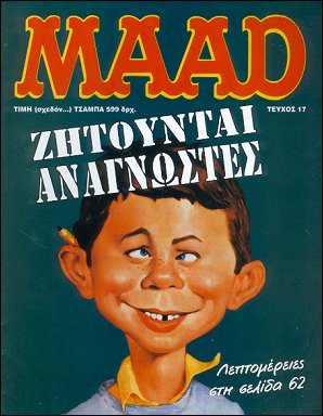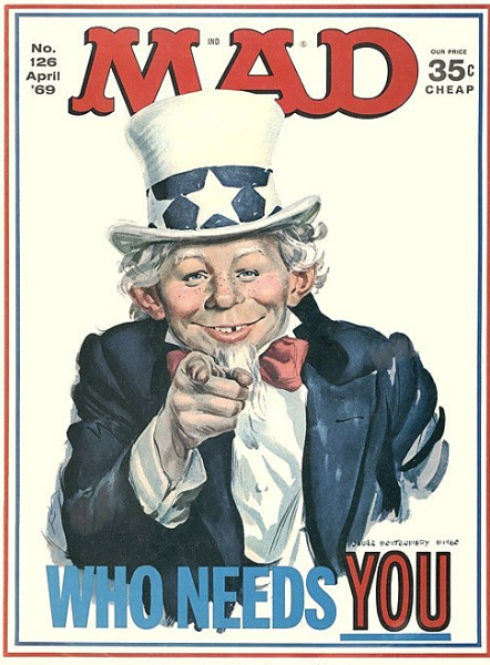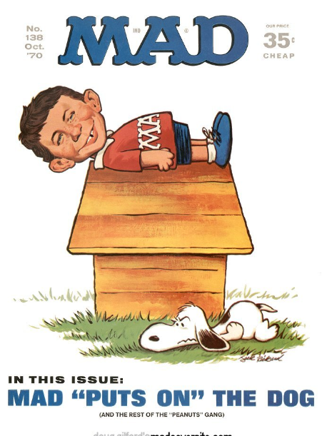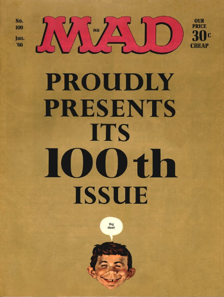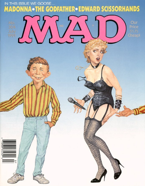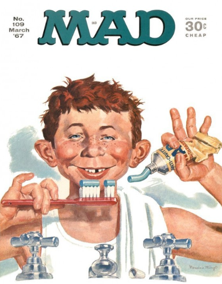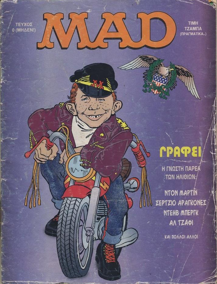 Το Mad Magazine κατάφερνε να σατιρίσει μέσα από τις κόμικ σελίδες του όλο το αμερικανικό παράδοξο, από την πολιτική μέχρι την ποπ κουλτούρα αλλά και πολύ έξυπνα, να ενσωματώσει όλες αυτές τις «αμερικάνικες τεχνικές» για να προβάλει τον εαυτό του (παρατηρήστε τις λεζάντες στα εξώφυλλα των τευχών…). Αδιαφιλονίκητος πρωταγωνιστής-μασκότ του Mad, o Alfred E. Neuman που με σύνθημα το “What, me worry?”, τον είδαμε σε άπειρες μεταμορφώσεις αλλά και cameo όλα αυτά τα χρόνια στις σελίδες του περιοδικού.
