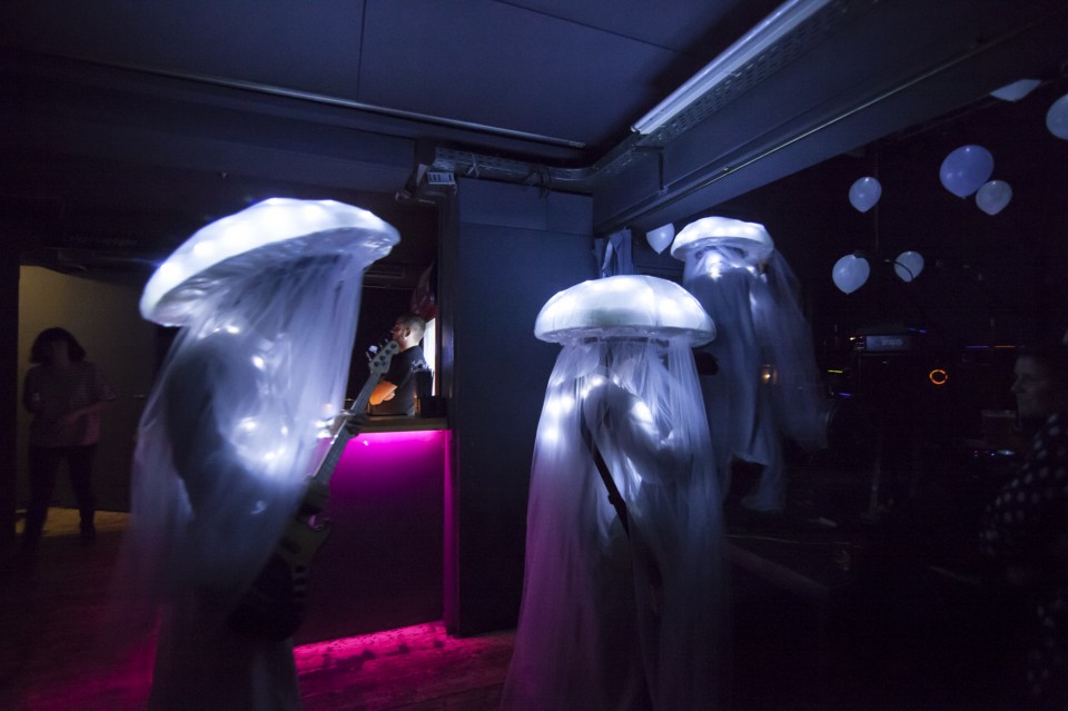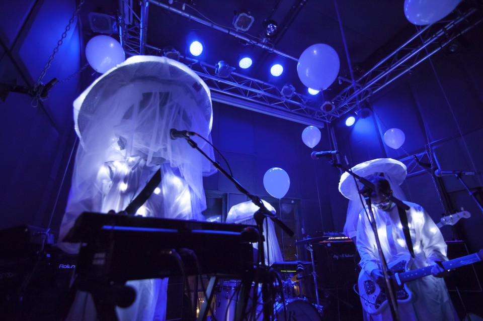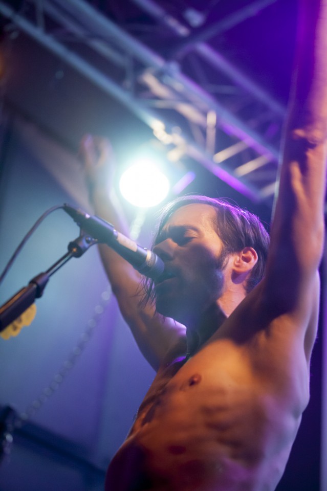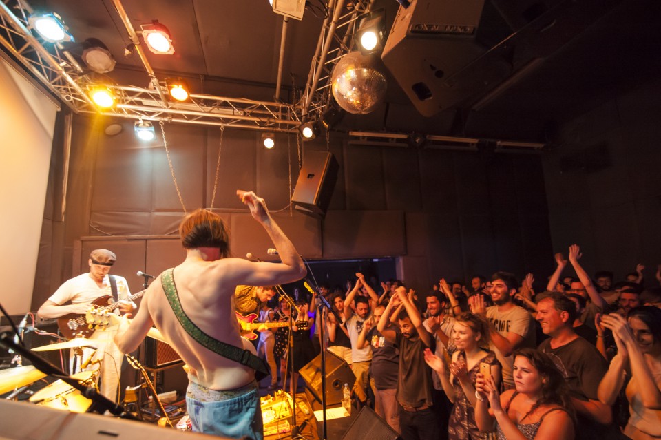 Να ξεκινήσω με το συμπέρασμα ότι οι My Wet Calvin ήταν η καλύτερη επιλογή για support. Μπήκαν μέσα με διάθεση πάρτυ -όπως πάντα δηλαδή-, ντυμένοι όλοι σαν φωτεινές μέδουσες με πέπλα (είναι οι My Wet Calvin, δεν χρειάζεται να βγάλει κανείς κάποιο νόημα, απλώς αφηνόμαστε στο trip τους) και έχοντας γεμίσει τον χώρο με λευκά μπαλόνια, απέδειξαν ότι όντως είχαν λείψει τα τελευταία δύο χρόνια που απείχαν από τα live. Ελπίζω να μην περάσουν ακόμη δύο για το επόμενο. Όταν οι μέδουσες έσβησαν και κάθισα για λίγο στο πίσω μπαρ να ξαποστάσω, άκουσα ιαχές από τα παρασκήνια και αν δεν είχε τελειώσει το Μουντιάλ θα ορκιζόμουν ότι μπήκε κάποιο γκολ. Στην πραγματικότητα ήταν οι Αμερικανοί οι οποίοι προφανώς περνούν τόσο φανταστικά στην Αθήνα από το Σάββατο που έχουν έρθει, που έκαναν ένα μίνι παρτάκι μόνοι τους πριν βγουν στη σκηνή.