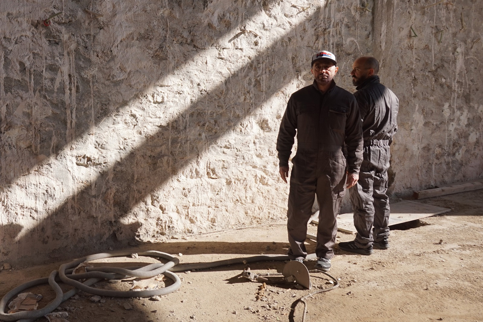 «Και κάπως έτσι περπατάει ο ένας πίσω απ’ τον άλλο/ γελώντας ή κλαίγοντας σ’ ένα κόσμο μεγάλο». Στάσεις, επιλογές location, καφές στο χέρι, ήχοι να τρέχουν μέσα στο κεφάλι, γέλια που σκάνε από ιστορίες παλιές, περπάτημα ανάμεσα σε βαριές σιδεριές -άδεια κουφάρια που θυμίζουν τις ασπρισμένες φαλαινοραχοκαλιές στο Λεβιάθαν του Αντρέι Ζβιάγκιντσεφ-, εργοτάξιο, μπουλντόζες, αστική ερημιά, σκόρπιοι γερανοί. Οι αδερφοί Κοέν αν ήταν εδώ θα έστηναν σκηνές για όσκαρ, δεδομένο. Στο βάθος, φύλακες που προστατεύουν τις άδειες περιουσίες κοιτούν, δεν πλησιάζουν, απλά παρακολουθούν από απόσταση μη τυχόν και παρασπονδίσεις (κάνοντας άραγε τι;). Οι «βόλτες κοντά στο λιμάνι» έχουν τον χαρακτήρα της πρώτης επαφής, η θάλασσα όμως είναι εκεί δίπλα και σε καλεί για το απόλυτο shooting γιατί αυτή ξέρει, και πώς να σε αγκαλιάζει και πώς να σου αποκαλύψει τα πιο κρυφά της μυστικά…