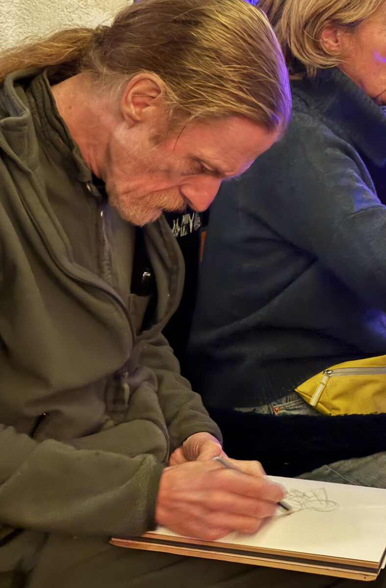 Ένας από το κοινό αποφάσισε να ζωγραφίσει σε έναν πίνακα τον Διονύση ενώ παίζουμε. Νομίζω κάπου υπάρχει και το τελικό.