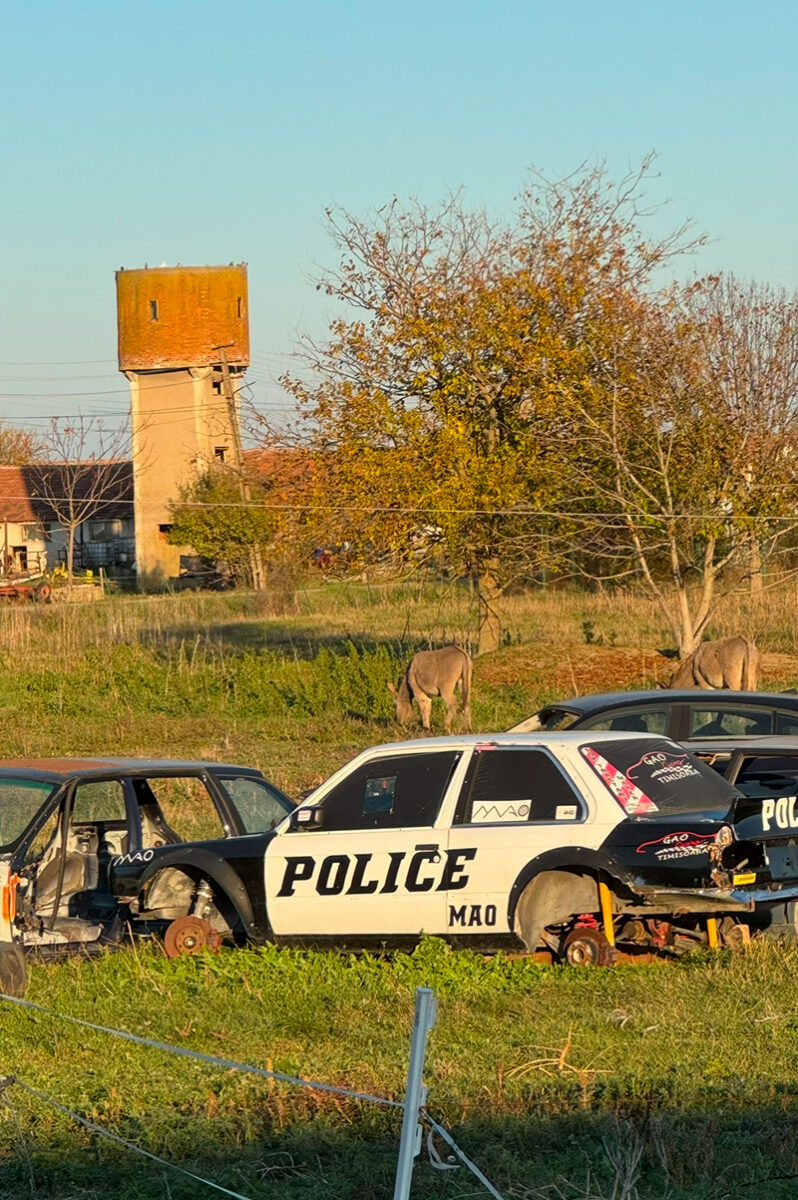 Ταξιδεύοντας προς την Τιμισοάρα σταματήσαμε για ξεκούραση και είδα αυτό το τοπίο. Ένα μπατσικό με κάτι γαϊδούρια γύρω του και ένας πύργος. Ε, δεν το συναντάς και κάθε μέρα…
