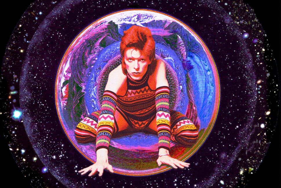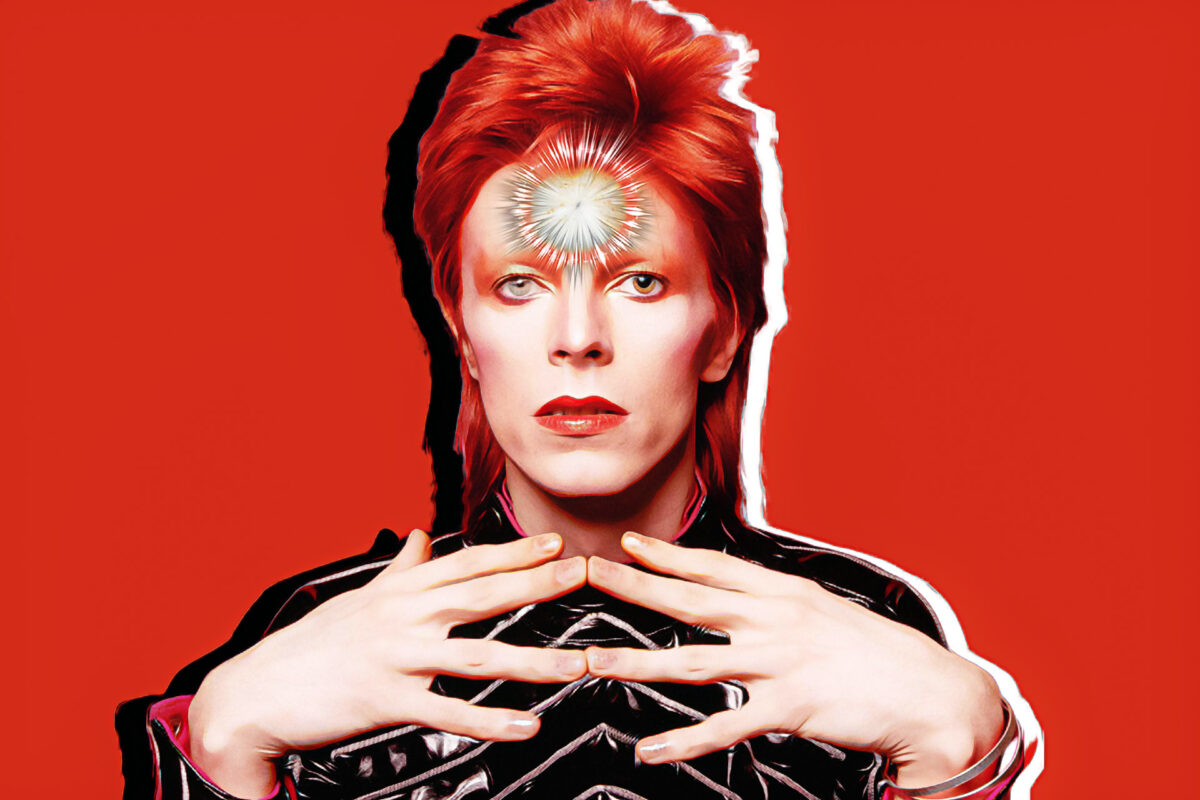 Η δεκαετία του ’70 τον βρίσκει να ξαναγεννιέται μέσα από το glam rock και να πετά γκλίτερ στην καταπιεσμένη συνείδηση της κοινωνίας. Ο Ziggy Stardust, ένας εξωγήινος με κόκκινα μαλλιά και λαμπερά κοστούμια, δεν είναι απλώς ένας χαρακτήρας, αλλά η φωνή των outsiders, εκείνων που νιώθουν ότι δεν ανήκουν. Και τους λέει ότι δεν χρειάζεται να ανήκουν, ότι μπορούν να κυριαρχήσουν.