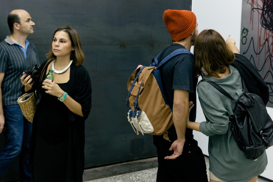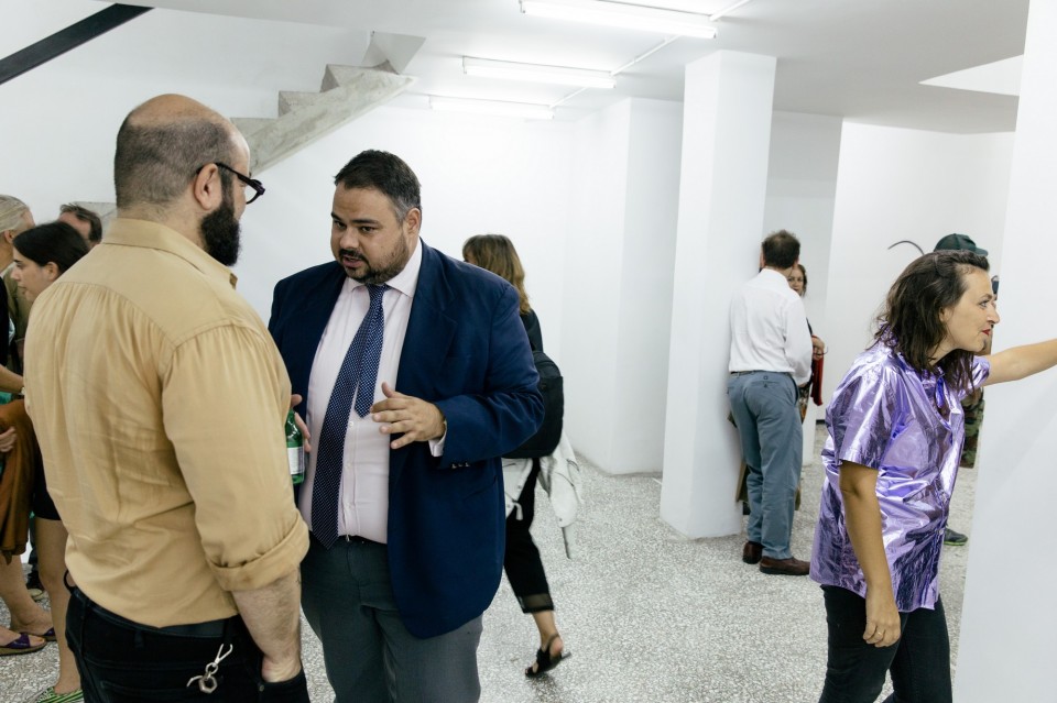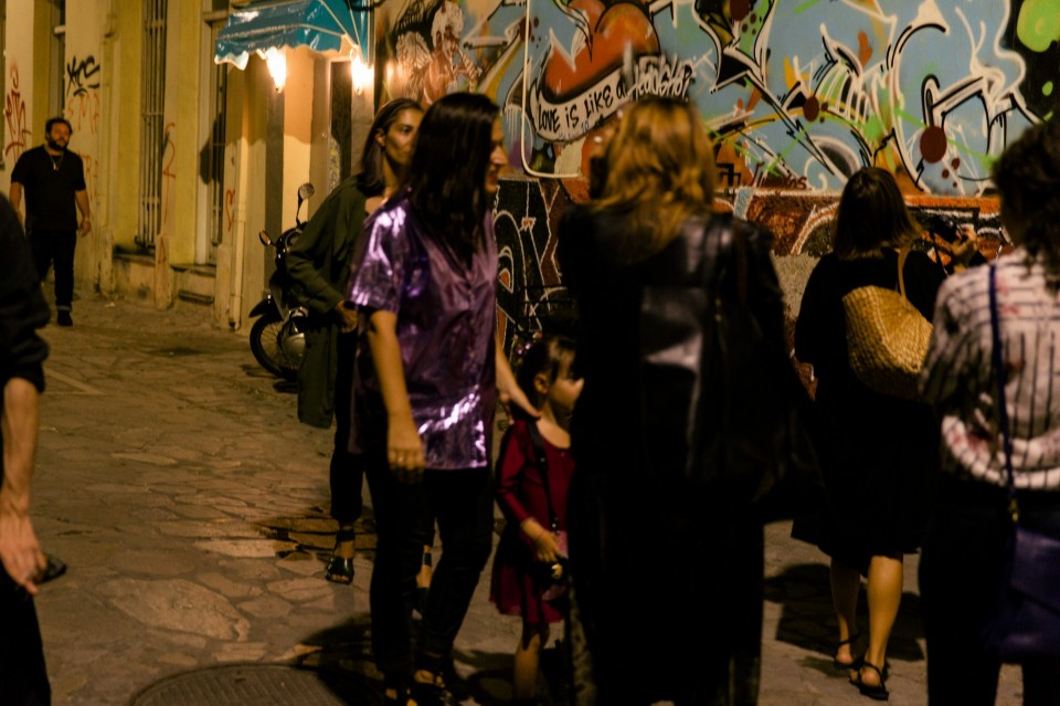Παραδόξως, το ακίνητο σύμπαν αυτού του επιπέδου, με την υπόγεια εσωτερική ενέργεια και κίνηση, συνομιλεί με τον καταναγκαστικά κινούμενο κόσμο του υπογείου με τις 5 δυστυχισμένες φιγούρες. Το χρώμα του ενός χύνεται στο χρώμα του άλλου, κι αυτό εν συνεχεία ενώνεται με το απειθάρχητο χρώμα του πλήθους των επισκεπτών. Η σκηνοθετημένη performance μπορεί να μας βάζει σε σκέψεις, μπορεί να μας κάνει να βλέπουμε βουβές σκηνές από έργο του Ιονέσκο, αλλά δεν έχει–δεν θα μπορούσε να έχει- την δύναμη της παράστασης που συντελείται ζωντανά έξω απ’τους τοίχους της Breeder. Εκεί όπου τα φωτορυθμικά και οι φιγούρες του Μικυ Μάους σε καλούν να αγοράσεις το σεξ, ημίγυμνες γυναίκες περνάνε σαν φαντάσματα από την ανοιχτή πόρτα σε κλάσματα δευτερολέπτου, ενώ τα πάντα τελικά καταπίνει η θηριώδης τσίκνα της λαϊκής ψησταριάς “Η Αρτα” όπου τρώνε σαν μια καλή παρέα γνωστοί εικαστικοί και curators, trans και νταβατζήδες.