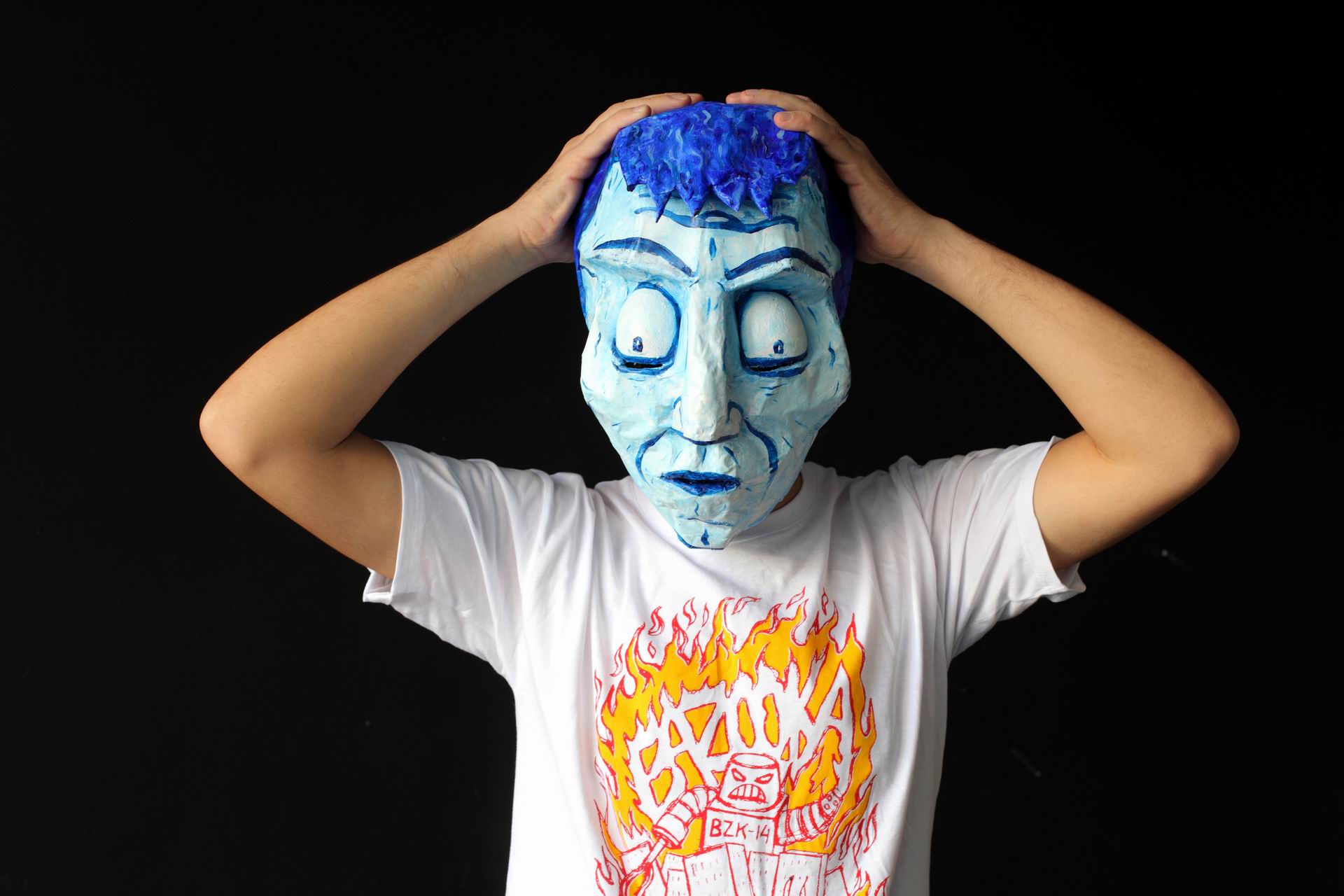 Και αποφάσισες αυτούς τους έξι μήνες να τους «χωρέσεις» στα σχέδια και τις ιστορίες σου. Τα έργα εκτέθηκαν μόνο δύο μέρες στο χωριό ενώ βγήκαν από πολύ έντονη εργασία, πρωτόγνωρη για εμένα. Επιστρέφοντας από τη δουλειά, έπρεπε κάπου να αποτυπώσω τα τόσα ερεθίσματα και σχεδίαζα. Έτσι γεννήθηκε η ιδέα του βιβλίου, είχα πολλά να βγάλω από μέσα μου, ήθελα να δώσω την άποψή μου για το τι πάει στραβά στην Ισλανδία και τι εδώ. Γιατί και η δουλειά μου γενικά κινείται σε αυτό τον άξονα. Ξεκινούν με αφορμή το τοπίο και τους μύθους και φτάνουν και στα άσχημα της ισλανδικής κοινωνίας. Το τρίτο κομμάτι της διαδικασίας του βιβλίου ήταν το crowdfunding, την μάσκα και το βίντεο που έφτιαξα για να το προωθήσω και που τα θεωρώ συστατικά στοιχεία του, ήταν μία λύση στους προβληματισμούς που είχα στο πώς διακινείται η τέχνη.