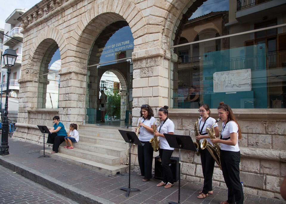 Ήταν μια πραγματικά συγκινητική – και βαθιά κοινωνική – εμπειρία να παρακολουθείς από νωρίς το πρωί ως το σούρουπο να υλοποιείται η ιδέα του γνωστού (και Ρεθύμνιου) σύγχρονου συνθέτη Γιώργου Κουμεντάκη, ο οποίος είχε αναλάβει εθελοντικά φέτος το ρόλο του αεικίνητου υπεύθυνου προγραμματισμού των εκδηλώσεων που έκαναν τα επίνεια της πόλης – την πάντα υποβλητική και λαμπρά φωτισμένη τη νύχτα Φορτέτζα και όλη την περιοχή γύρω από την παλιά πόλη και το λιμάνι – να μοιάζουν ακόμα πιο εντυπωσιακά, αναδεικνύοντας τη σύνδεση τους με την πολυκύμαντη ιστορία του τόπου.