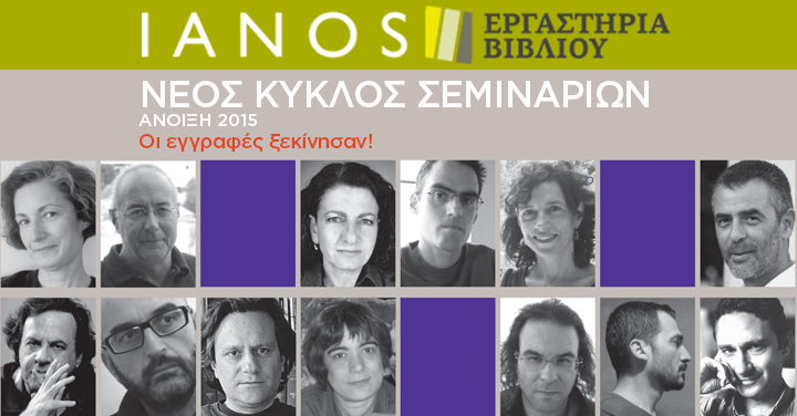 Μετά τους επιτυχημένους τέσσερις κύκλους εργαστηρίων-σεμιναρίων δημιουργικής γραφής και διόρθωσης-επιμέλειας κειμένων, από την άνοιξη του 2013, η Αλυσίδα Πολιτισμού IANOS ανταποκρίνεται στη ζήτηση των ενδιαφερομένων και παρουσιάζει μια ενότητα σεμιναρίων η οποία καλύπτει ένα ευρύ φάσμα γνωστικών αντικειμένων που σχετίζονται με το βιβλίο. Με γνώμονα την ποιότητα και το πάθος για το βιβλίο και αποσκοπώντας όχι μόνο στη συγγραφική πρόοδο και στην επαγγελματική κατάρτιση των συμμετεχόντων, αλλά και στην ενημέρωση, την επιμόρφωση και την καλλιέργεια αυτών που αγαπούν το λογοτεχνικό κείμενο και το βιβλίο γενικότερα, έμπειροι και καταξιωμένοι συγγραφείς και επαγγελματίες του χώρου του βιβλίου, με διδακτική εμπειρία, συμμετέχουν στην ομάδα διδασκόντων των Εργαστηρίων Βιβλίου.