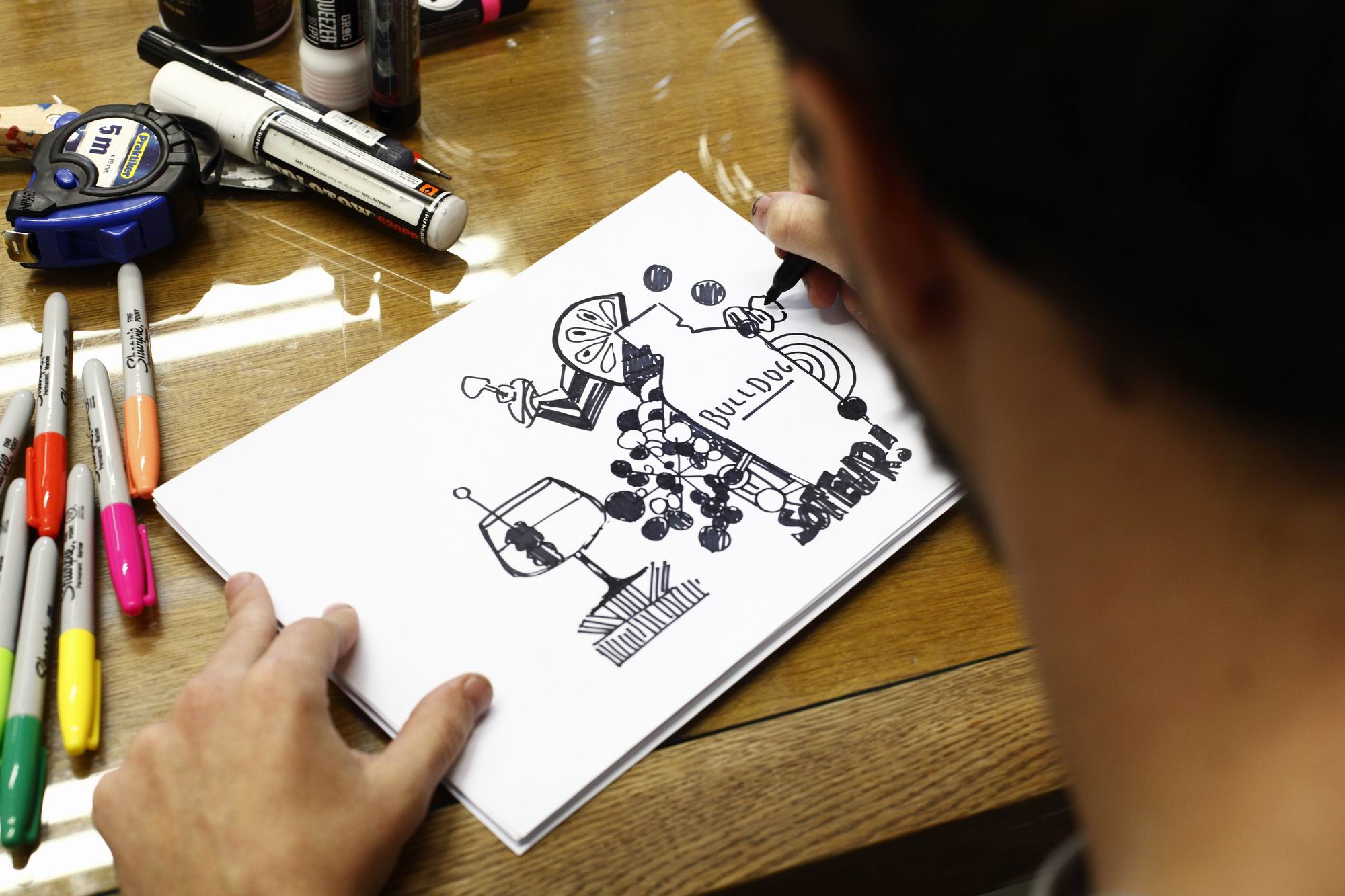 Έχεις κάποιο καλλιτεχνικό απωθημένο; Ένα όνειρο που να έχει να κάνει με την τέχνη σου; Είμαι στην απίστευτα ευχάριστη θέση να απαντήσω πως ΟΧΙ! Έχω την “τύχη” να είμαι απ’ τους καλλιτέχνες που έργο τους είναι να κάνουν ό,τι μπούρδα τους έρθει στο κεφάλι και που όντως νιώθουν ελεύθεροι να κάνουν ό,τι φανταστούν, χωρίς να πρέπει να δώσουν αναφορά πουθενά. Όλα αυτά βέβαια, μέχρι να πάρω την αναγνώριση που μου αξίζει σαν insta-model και να σταματήσω να ασχολούμαι με μαρκαδόρους και μπογιές.