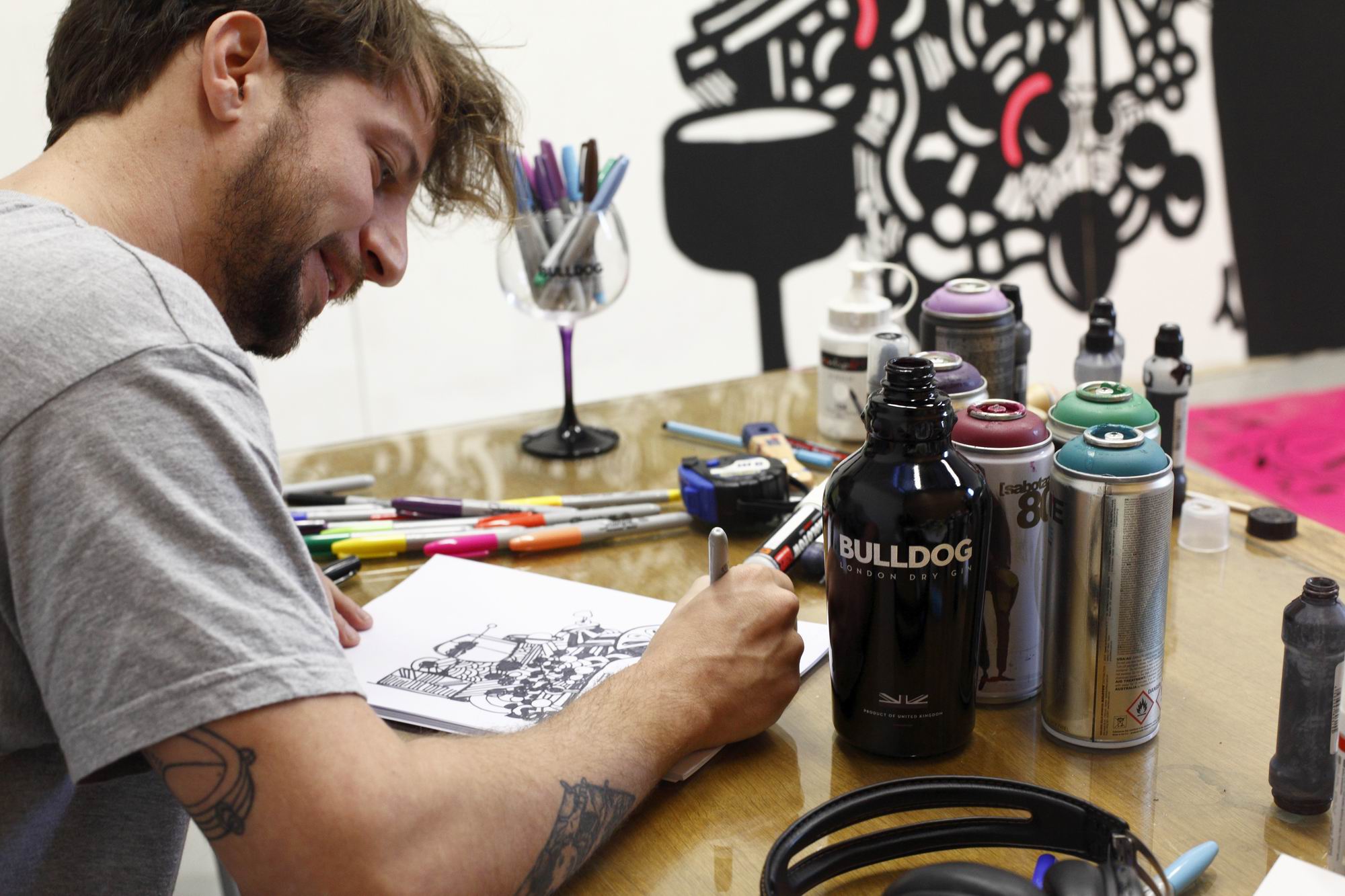 Τον τελευταίο καιρό ετοιμάζει ένα μοναδικό έργο για το Bulldog Gin. Ένα έργο για όσους είναι ανεξάρτητα πνεύματα, θέλουν να αφήσουν το στίγμα τους, να απολαύσουν την ζωή, αποδεχόμενοι διαρκώς νέες προκλήσεις και προσκαλώντας και άλλους στο ταξίδι τους. Ένα έργο που εκφράζει ακριβώς τα όσα πρεσβεύει το φημισμένο τζιν, αλλά και ο ίδιος ο Soteur ως καλλιτέχνης.