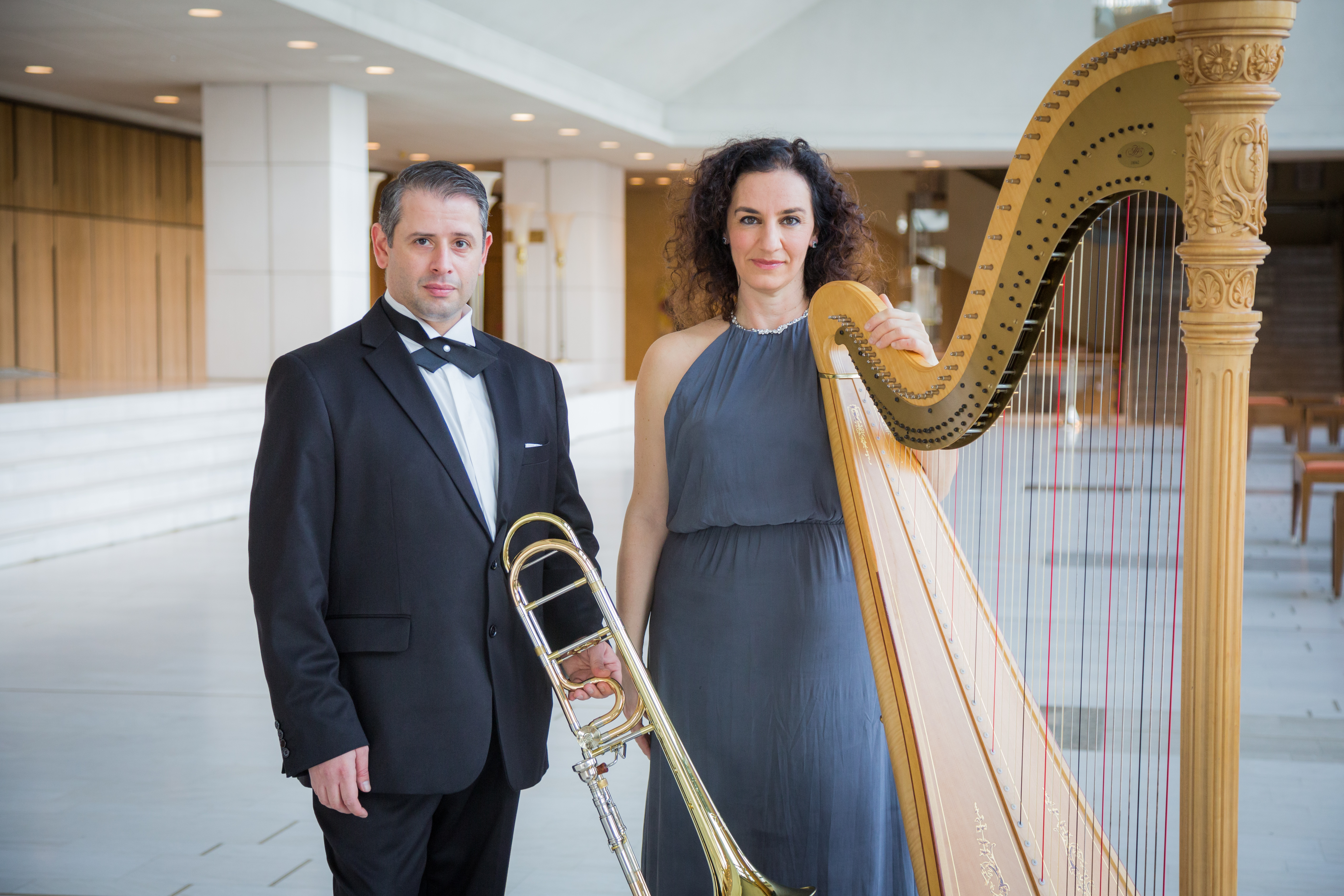 Άρπα και Τρομπόνι. Παίζετε δύο από τα πιο ασυνήθιστα σολιστικά όργανα μιας συμφωνικής Ορχήστρας. Αισθάνεστε ότι το ρεπερτόριο των οργάνων σας είναι σχετικά περιορισμένο, μειώνοντας ενδεχομένως τον ορίζοντα των επιλογών σας; Γωγώ Ξαγαρά: Προσωπικά, συχνά αισθάνομαι «ζήλια» για συναδέλφους που παίζουν Μπετόβεν, Σούμπερτ, Σούμαν ή Χάυντν, έργα από τα οποία είμαστε αποκλεισμένοι. Τα τελευταία χρόνια, υπάρχει η τάση από τους αρπίστες παγκοσμίως, να ερμηνεύσουν αυτή τη μουσική, δανειζόμενοι έργα από το πιάνο. Εγώ για παράδειγμα, παίρνω ένα Κοντσέρτο για πιάνο, ως έχει και το παίζω στην άρπα, γιατί επιθυμώ να ερμηνεύσω συνθέσεις αυτής της εποχής.