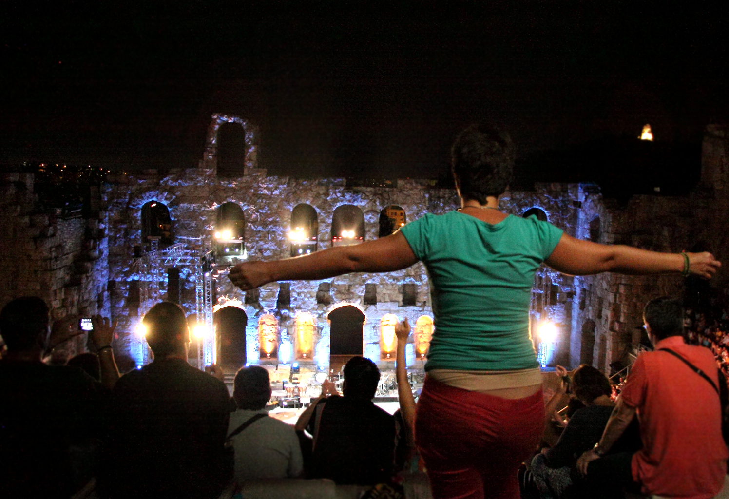 Άφησα για το τέλος το κοινό, το οποίο ούτως ή άλλως σε τέτοιες περιπτώσεις έχει έναν ενισχυμένο ρόλο. Για κάποιο λόγο το κατάμεστο Ηρώδειο δεν μπόρεσε να συντονιστεί όπως ίσως θα περίμενε κανείς με το πρόγραμμα. Μπορεί σε κάποια τραγούδια όπως το τελικό “Ένα το χελιδόνι” να χειροκροτούσε ρυθμικά και να τραγουδούσε τους στίχους του Οδυσσέα Ελύτη εν χορώ (με την έντονη παρότρυνση του Παπακωνσταντίνου και δεδομένου ότι η συναυλία έληγε), αλλά αν εξαιρέσεις κάποια μεμονωμένα περιστατικά λατρευτικής εξωστρέφειας υπήρξε μάλλον μουδιασμένο. Ίσως αυτό να οφείλεται στο ότι ο κόσμος δεν έχει συνηθίσει τον Παπακωνσταντίνου να τραγουδάει ζωντανά Θεοδωράκη, ίσως γιατί η συναυλία ήταν ειδικού φιλανθρωπικού σκοπού, οπότε οι συνειδητοποιημένοι της μουσικής να ήταν λιγότεροι από τους αναμενόμενους. Με εξαίρεση πάντως- που μας εξέπληξε- το “Γελαστό παιδί”, στα υπόλοιπα τραγούδια το κοινό ήταν κάπως διστακτικό.