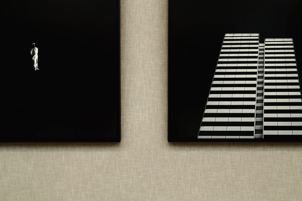Μετά, υπάρχουν οι μεγάλες φωτογραφίες των ίδιων των φωτογράφων. Σύγχρονη, αφαιρετική φωτογραφική ματιά πάνω στην ψευδαισθητική πραγματικότητα -προσωπική και συλλογική- που εγγράφεται στην επιφάνεια της φωτογραφίας. Τα έργα, σε αυτό το σημείο, λειτουργούν πιο καθαρά ως συγκείμενα της μνήμης μίας “αντικειμενικής” ιστορικής και κοινωνικής πραγματικότητας.