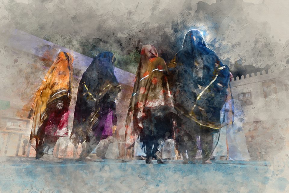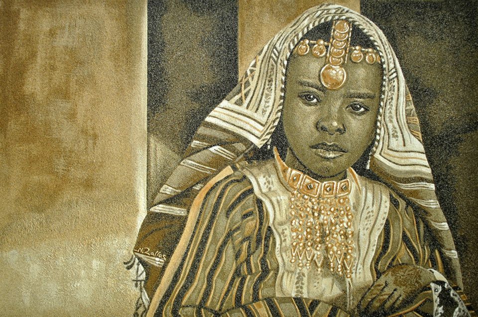 Κορίτσι με παραδοσιακή φορεσιά από την πόλη Sur (Πίνακας με την τεχνική μου με διαφορετικές αποχρώσεις άμμου, χωρίς προσθήκη χρώματος).