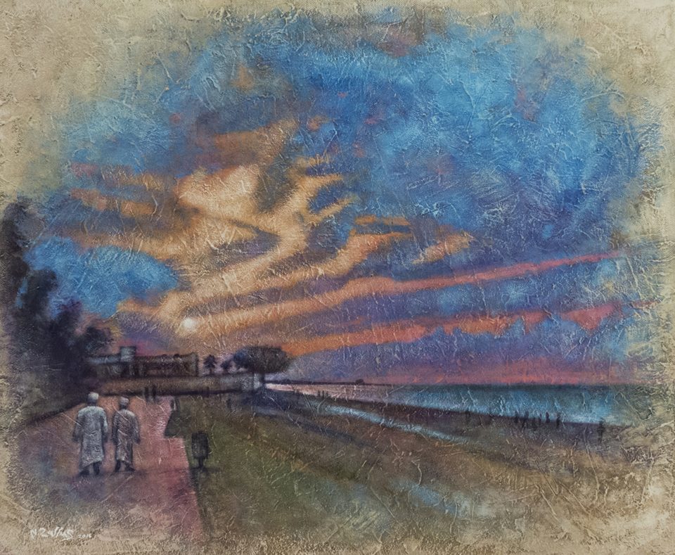 «Απογευματινός περίπατος», (Ελαιογραφία σε μουσαμά επεξεργασμένο με γύψο).