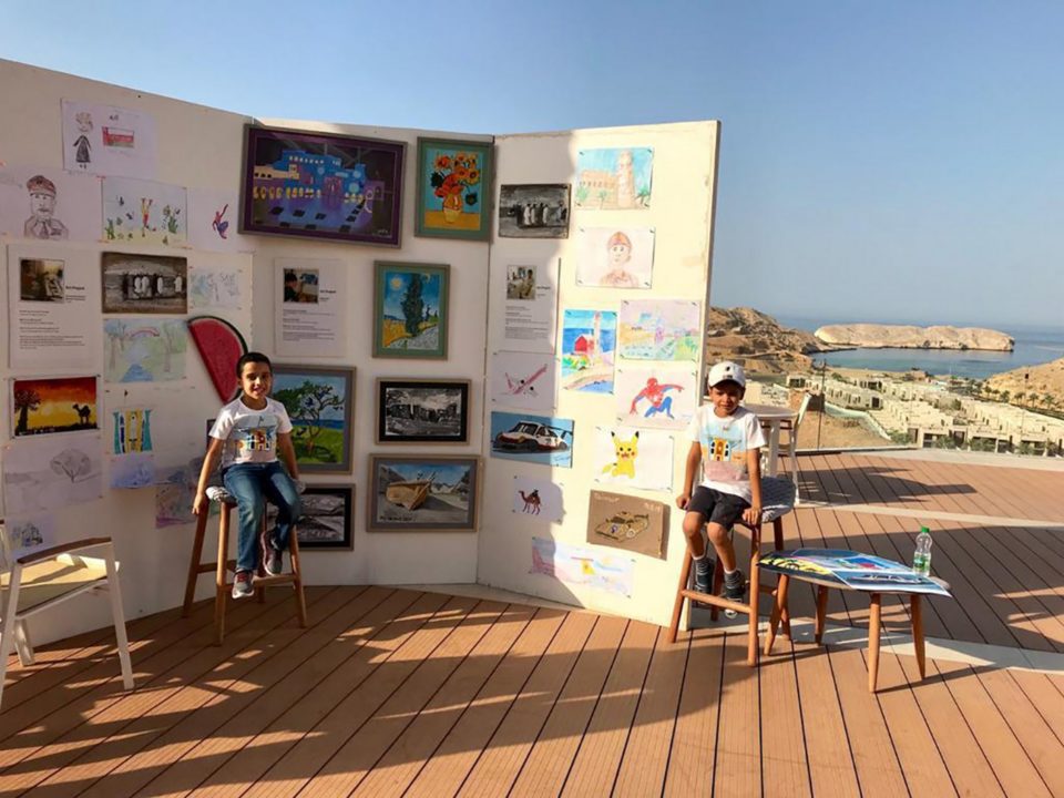 Μικροί μαθητές του Νίκου Ζάρρα στην έκθεση που τους διοργάνωσε στο Muscat Bay.