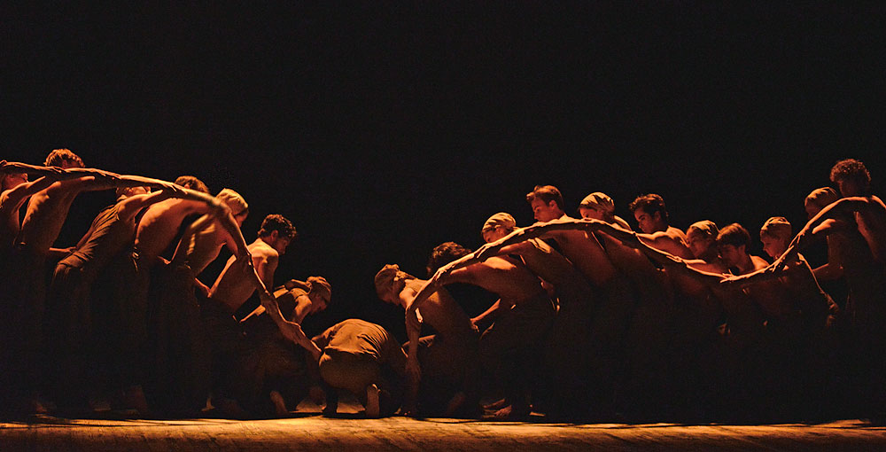 Ένα σάρκινο κύμα. Σώματα ενωμένα, διαχέονται, ορίζουν το χώρο, τις διαστάσεις, όλες τις πιθανές εκδοχές του. Το κύμα αυτό το είδαμε να ξεδιπλώνεται στη ανακαινισμένη κεντρική σκηνή του Εθνικού Θεάτρου το 2009, ως κεντρικό θέμα στο «Πουθενά», του Δημήτρη Παπαϊωάννου. Αφιερωμένο στη μνήμη της Πίνα Μπάους με 26 ερμηνευτές να μετρούν και να αναμετριούνται με τις διαστάσεις και δυνατότητες του χώρου, σε ένα site-specific έργο.