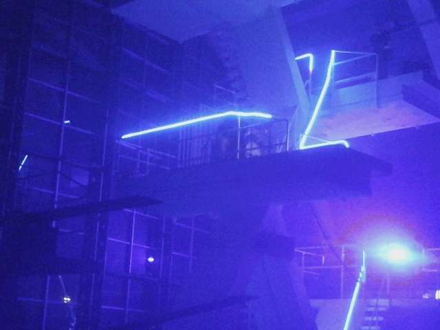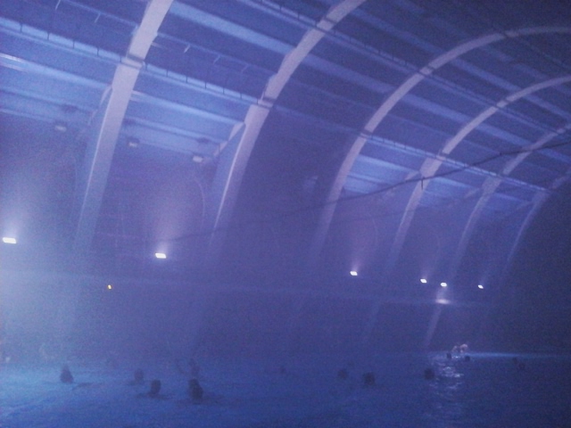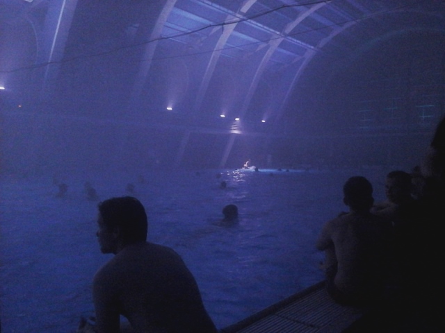 Άριστο συνδυασμό πρωτότυπου τόπου, φωτισμού και υψηλού επιπέδου μουσικής, χρεώνουμε στο ένα κομμάτι του ελβετικού project, με τον γενικό τίτλο, Under the tail of the Horse, που κατάφερε να βάλει με το «Podoli Wave» του όλη την Biennale στην πισίνα της πόλης. Μια πισίνα επικών διαστάσεων, με γυάλινη αψιδωτή οροφή, ψυχεδελικά φωτισμένη (Maria Predour) και με άψογο ήχο, όπου ο curator Eric Linder και το συγκρότημα του Sunfast και η εκπληκτική music story teller, Joy Frembong, ένα αέρινο και ταυτόχρονα μαιναδικό ξωτικό, μισή από την Ελβετία, μισή από την Γκάνα, συντροφιά με τον αλλόκοτα μεταμφιεσμένο drummer, Lleluja Ha, έδωσαν τη συναυλία τους στους λουόμενους συμμετέχοντες, οι οποίοι σε ένα αλλόκοτο trance, κολύμπησαν επί τρεις ώρες, κάτω απ τους ήχους της μουσικής.