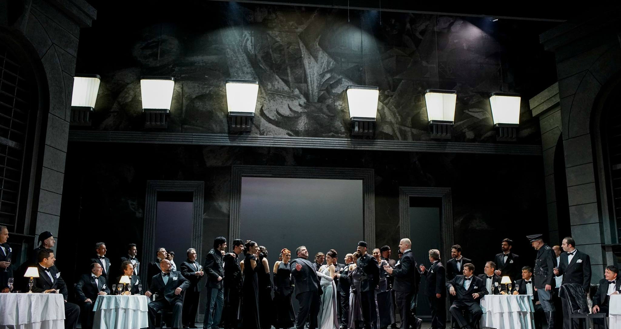 Ο τυχοδιώκτης Δούκας μεταμορφώνεται έτσι σε Ras του Μιλάνο, στέλεχος της φασιστικής κομματικής μηχανής. Αυτό δεν ξενίζει διόλου καθώς ο Δούκας και ο Ριγολέττο ενσαρκώνουν ένα δίδυμο αδίστακτο και επιρρεπές στην αυθαιρεσία της εξουσίας σαν εκείνα που τόσο συχνά συναντώνται σε αυταρχικά καθεστώτα. Η αντίληψη του πρώτου για τη ζωή διαγράφει το προφίλ ενός «fascista della prima ora», αναφέρει ο κ. Πετρόπουλος. «Επρόκειτο για φασίστες που μάχονταν στους δρόμους της Ιταλίας, πριν ακόμη ο Μουσολίνι λάβει την εξουσία. Ήταν κάτι καθίκια του κερατά». Αυτή ακριβώς η εποχή της φασιστικής τρομοκρατίας, «της ίντριγκας και της οίησης» που κυριαρχούσε στους δρόμους του μουσουλιάνικου Μιλάνο, στο φάσμα της περιβόητης Πορείας προς τη Ρώμη, αποτυπώνεται στην black ‘n’ white παράσταση της Εθνικής Λυρικής Σκηνής.