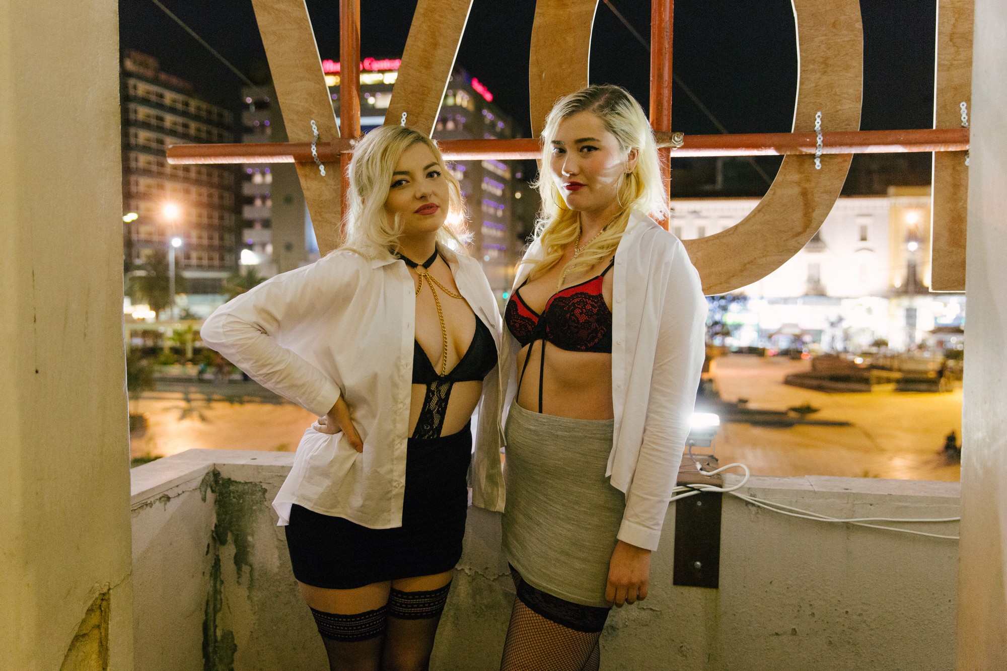 Τρία ζουμερά κορίτσια, με ζαρτιέρες, καυτά μίνι και σουτιέν κάθονται σε αίθουσα του πρώτου ορόφου του Μπαγκείου, στην Ομόνοια, πίσω από ένα τραπέζι γεμάτο προφυλακτικά, ταμπόν, οδηγίες χρήσης τους και φυλλάδια από παλιές δράσεις τους με live sex (μια από αυτές είχε τίτλο «Μeet the woman using art to demystify sex work»). Δεν είναι τυχαίες ιερόδουλες. Η Λώρα και η Λορίν σπουδάζουν Ανθρωπολογία και Καλές Τέχνες στο Goldsmiths του Λονδίνου, αλλά επιλέγουν να μου συστηθούν ως sex workers. Η Ρίμπα, που διδάσκει Πολιτικές Επιστήμες, δηλώνει παγερά Dominatrix. Είναι η πιο λιγομίλητη της παρέας. Bρέθηκαν στη Μπιενάλε της Αθήνας 2015-2017 σε μια καμπάνια αποστιγματισμού των επαγγελματιών στο χώρο του σεξ. Θέλουνε να δημιουργήσουν το δικό τους συνδικάτο στη Μ.Βρετανία και να διασυνδεθούν με ένα πανευρωπαϊκό δίκτυο κατά των διακρίσεων σε βάρος των ιερόδουλων.