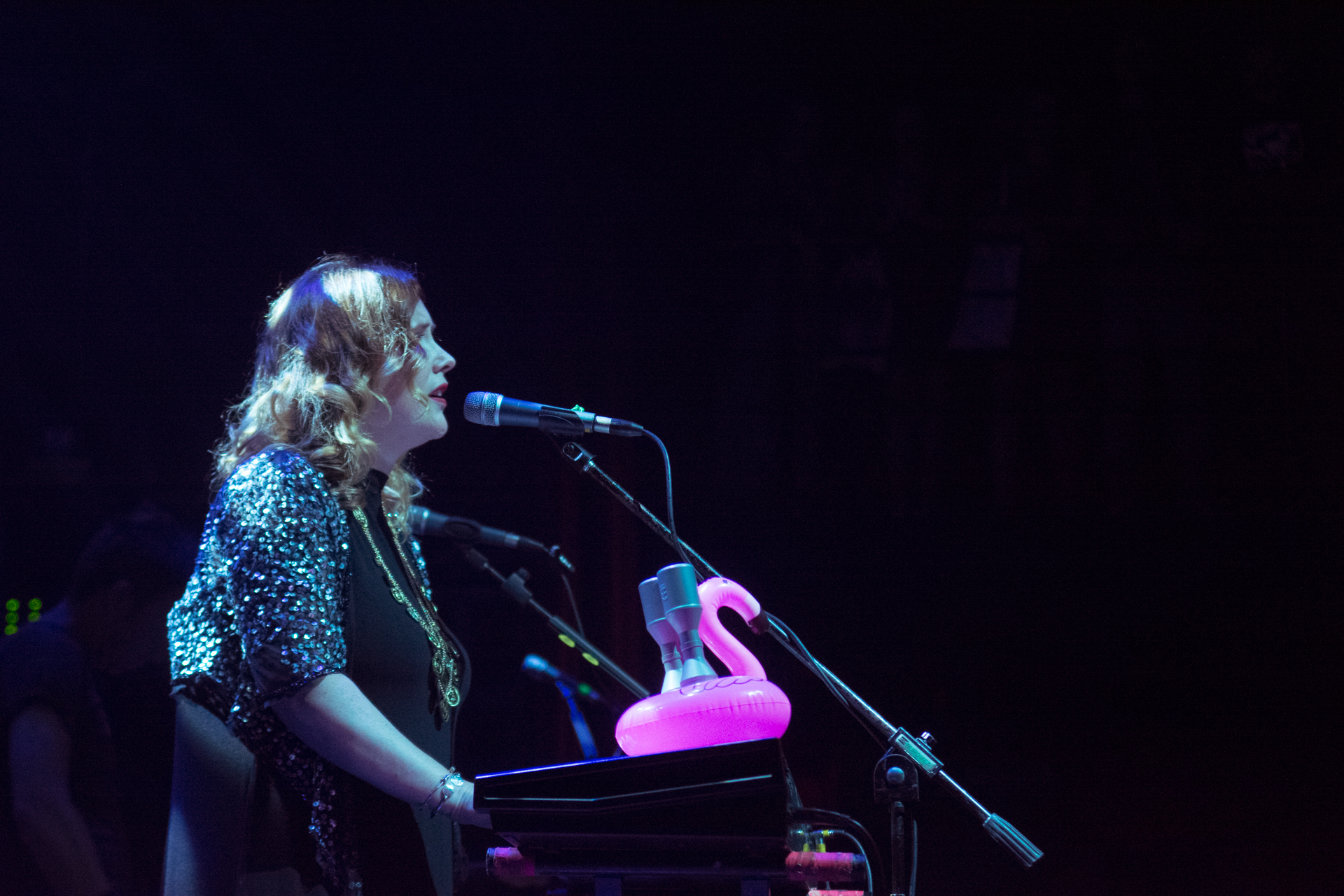 Κάπως έτσι, ακολούθησε μία μισάωρη «γλυκιά» αναμονή με τους καπνούς που έβγαιναν συχνά πυκνά στη σκηνή να ζεσταίνουν λίγο ακόμα την ατμόσφαιρα του γεμάτου ακόμη και στον εξώστη Fuzz και με ένα μικρό φουσκωτό ροζ φλαμίνγκο να περιμένει τη Rachel Goswell στο synth της και να προκαλεί ένα λιγάκι αμήχανο αλλά χαριτωμένο μειδίαμα στο κοινό. Απόλυτα «Εγγλέζοι», οι Slowdive βγαίνουν στη σκηνή στις προκαθορισμένες 22:30 και μας καλωσορίζουν όπως ακριβώς και στον τελευταίο δίσκο τους, δηλαδή με το “Slomo”. Από τα πρώτα λεπτά του set ένα ασυνείδητο «επιτέλους!» περνά από την σκέψη των περισσότερων και αφορά τον εντυπωσιακά καλό ήχο που αποτελεί σίγουρα τον πυλώνα της ολοκληρωμένης αισθητικής πρότασης των Slowdive που μας παρασύρουν αβίαστα.