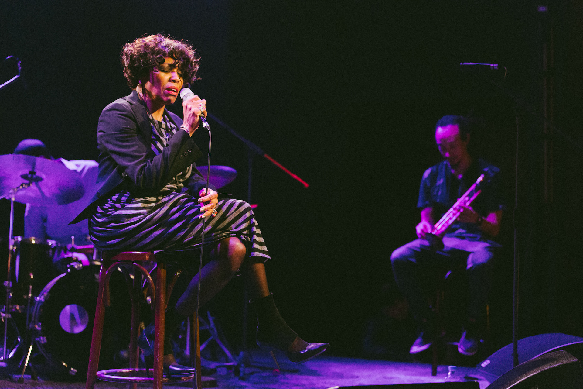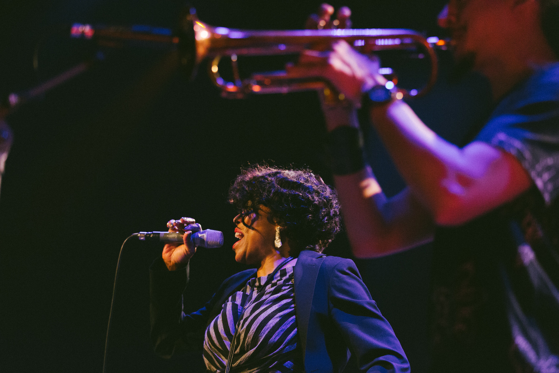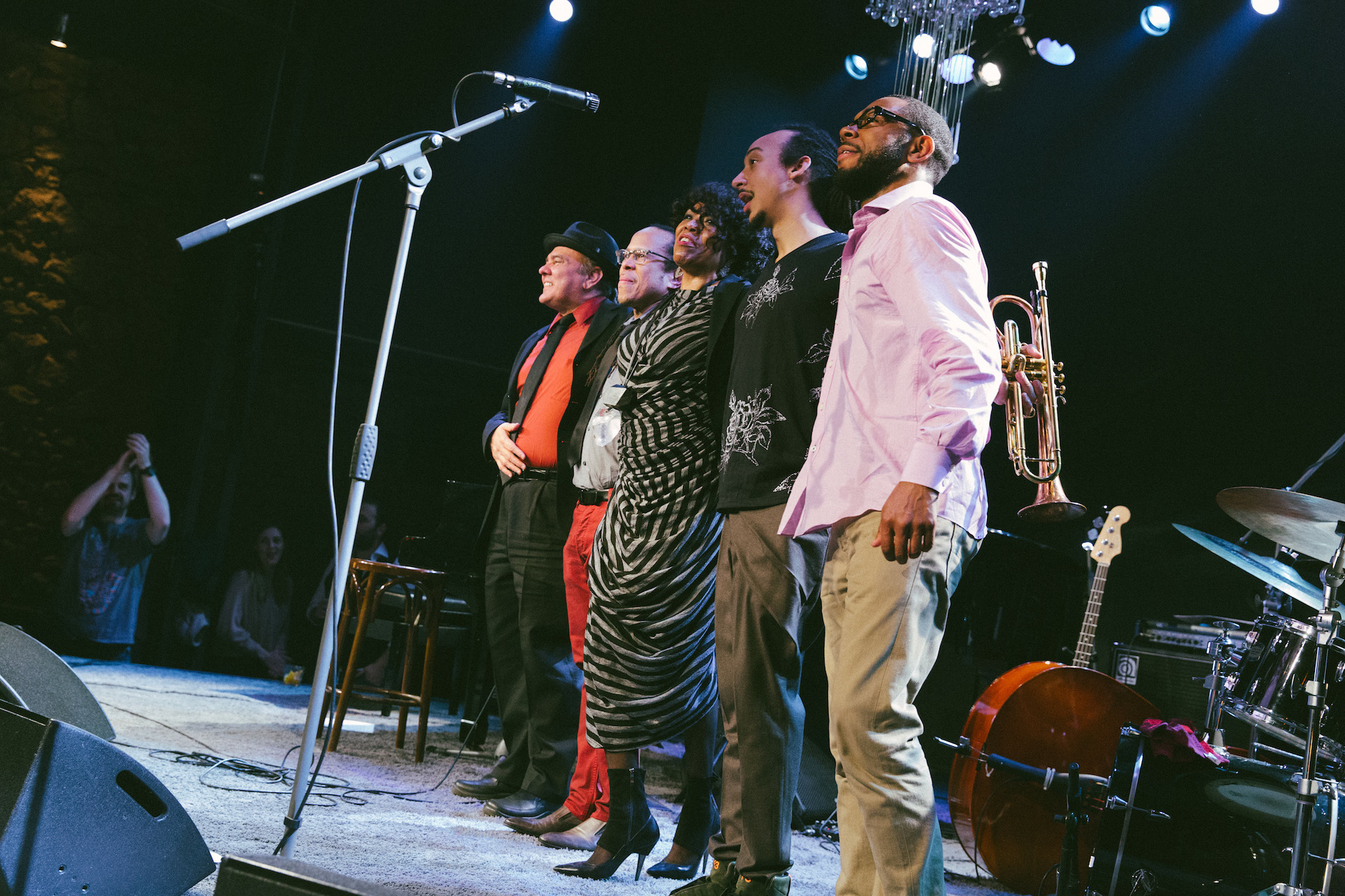 Και η αλήθεια είναι ότι η αίθουσα την αντάμειψε δεόντως , χειροκροτώντας δυνατά και σφυρίζοντας πάνω στα Viens viens και I give it to you honey, δείχνοντας μια οικειότητα κι έναν ενθουσιασμό που πολύ σπάνια βγαίνει σε τζαζ συναυλίες.
