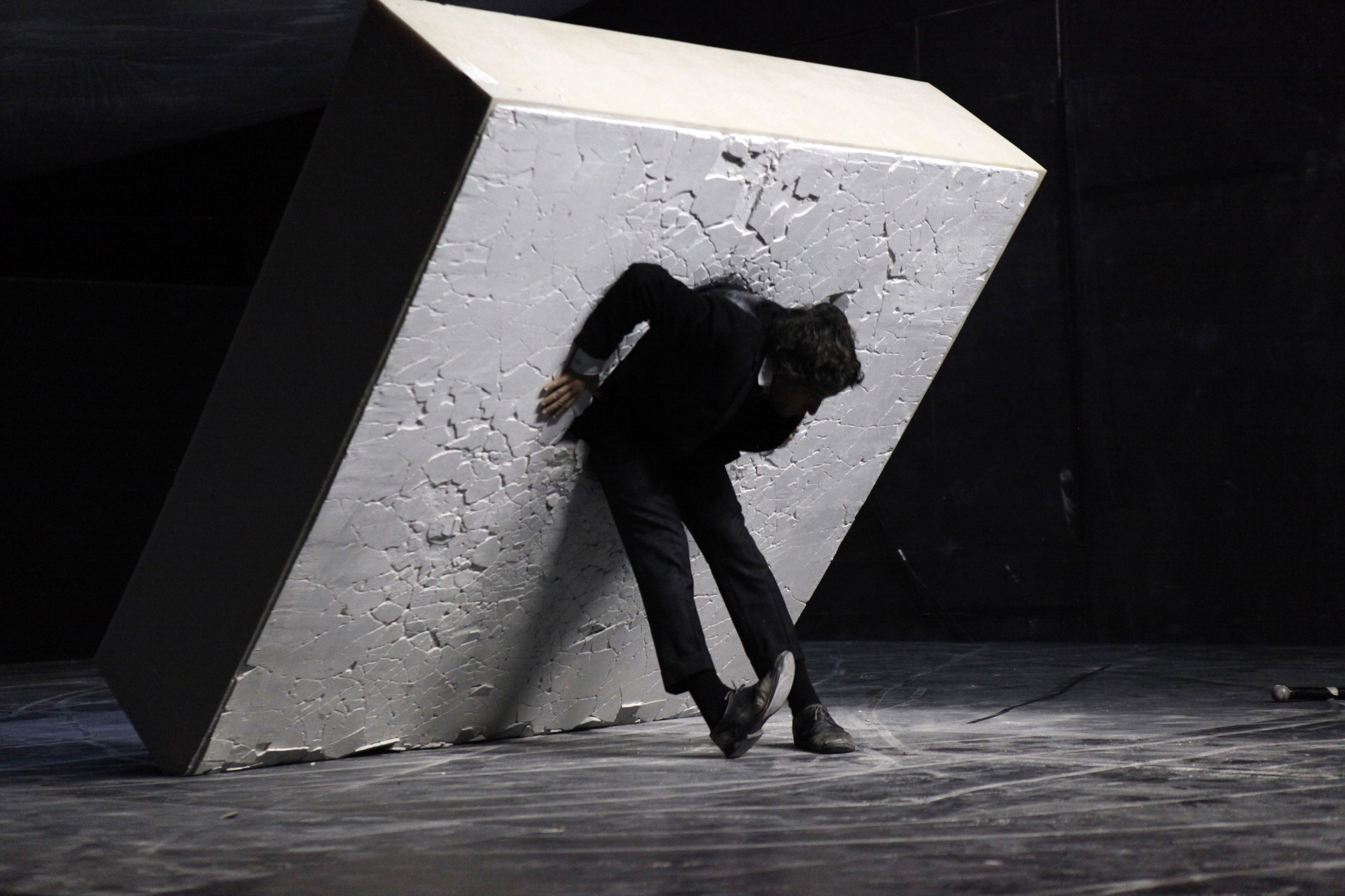 Στο κλείσιμο της παράστασης ο Σερβετάλης παίζει με τη βαρύτητα της πέτρας σαν να προσπαθεί να καταργήσει τον νόμο. Η vanitas της νεκρής φύσης επανέρχεται ως υπενθύμιση του πεπερασμένου αλλά και του κύκλου της ζωής και του θανάτου. Τελευταία η εικόνα της αποχώρησης των ερμηνευτών με τα λιτά μαύρα κοστούμια, σκονισμένα στους ώμους, όχι πια σύμβολο της αστικής τάξης αλλά της κοπιώδους εργασίας.