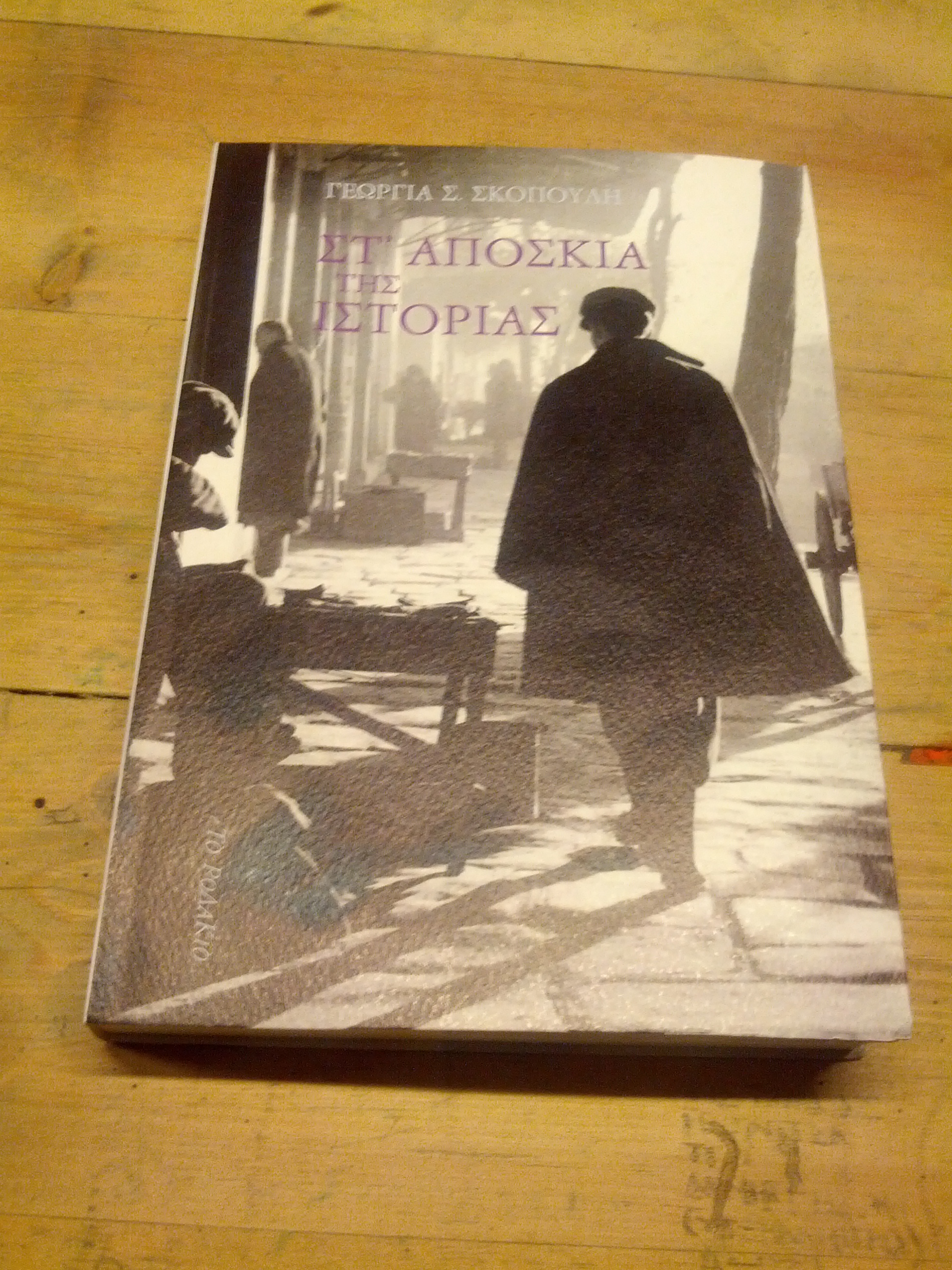 Την Δευτέρα το βράδυ (19:30) θα παρουσιαστεί στο βιβλιοπωλείο Φωταγωγός (Κολοκοτρώνη 59Β) το βιβλίο της Γεωργίας Σ. Σκοπούλη, Στ’ απόσκια της ιστορίας. Το βιβλίο κυκλοφορεί από τις εκδόσεις Το Ροδακιό. Συντονίστρια θα είναι η ηθοποιός Ρηνιώ Κυριαζή. Κεντρικός ομιλητής θα είναι ο Ομότιμος Καθηγητής του Πάντειου Πανεπιστημίου Θεοφάνης Πάκος. Το βιβλίο είναι αποθησαυρισμένο πολύτιμο υλικό από αυτοβιογραφικές αφηγήσεις ανδρών από την Ήπειρο που καλύπτουν ολόκληρο τον περασμένο αιώνα, ενώ πολλές φορές η αναφορά και στους γονείς τους και στους παππούδες τους μας πηγαίνει και σε χρόνους που μπαίνουν και στο 19ο αιώνα. Μαθαίνουμε από τις λιτές όσο και πυκνές εξιστορήσεις των αφηγητών την ανθρώπινη ιστορία, «τη δική τους και του τόπου τους. Την ιστορία που έτσι ποτέ δεν την είδαμε στα βιβλία τα σχολικά· ούτε και στις εγκυκλοπαίδειες τις μεγάλες. Εξήντα τρεις αγρότες, κτηνοτρόφοι και χτιστάδες της Ηπείρου. Εκατόν τρία χρονών ο μεγαλύτερος, εξήντα οχτώ ο μικρότερος. Παιδιά των πολέμων οι περισσότεροι με την ψυχή σημαδεμένη». Η Γεωργία Σκοπούλη γεννήθηκε το 1950 στην Πεδινή Ιωαννίνων, όπου και ζει από το 1989. Ασχολήθηκε με τη δημοσιογραφία για περισσότερα από είκοσι χρόνια. Τούτο είναι το τέταρτο βιβλίο της. Τα προηγούμενα ήταν: Μα, πρέπει να έχεις κάτι να πεις (Δωδώνη 2003), Αυτές που γίναν ένα με τη γη (Δωδώνη 2007, 2007, 2008), Ο Γιατρός (Δωδώνη 2009).