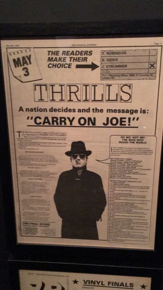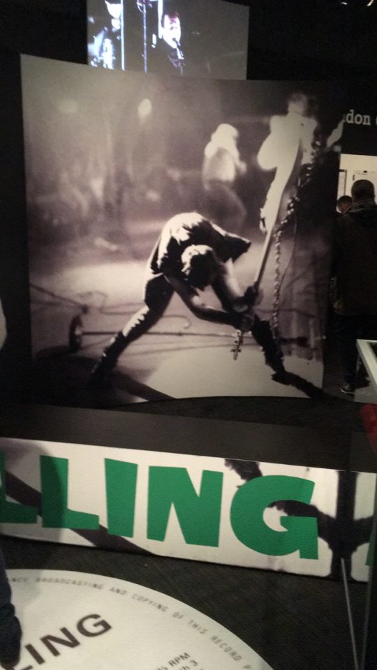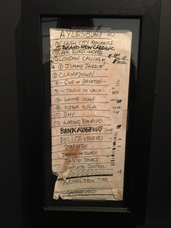 Ενα μικρό δωμάτιο όλο κι όλο αφιέρωσαν οι διοργανωτές αλλά με την πρώτη ματιά το τσακισμένο Fender Precision μπάσο του Paul Simonon, που κείτεται δεσποτικά πάνω σε κόκκινο βελούδο στην βιτρίνα/φέρετρό του, προς λαικό προσκύνημα προκαλεί αυτόματα πολλές ανατριχίλες. Οι κιθάρες, τα ρούχα, οι κάσες για τα όργανα, τα τετράδια με όλες τις σημειώσεις από την εποχή καθως και η γραφομηχανή του Joe Strummer περιστοιχίζουν αυτή την τετρακάναλη κονσόλα με την οποία το κοινό μπορεί να παίξει, ανεβοκατεβάσει και απομονώσει το μπάσο, τα φωνητικά, την κιθάρα κλπ.